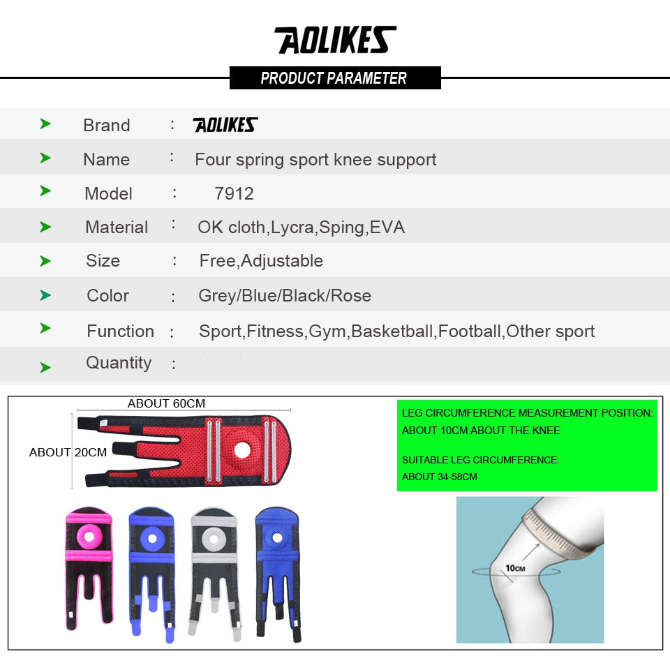 Đai quấn bảo vệ đầu gối thể thao AOLIKES A-7912 thoáng khí four spring sport knee support - Đối tượng sử dụng: Chạy bộ, đạp xe, bóng đá, cầu lông, tennis, bóng bàn, bóng rổ,