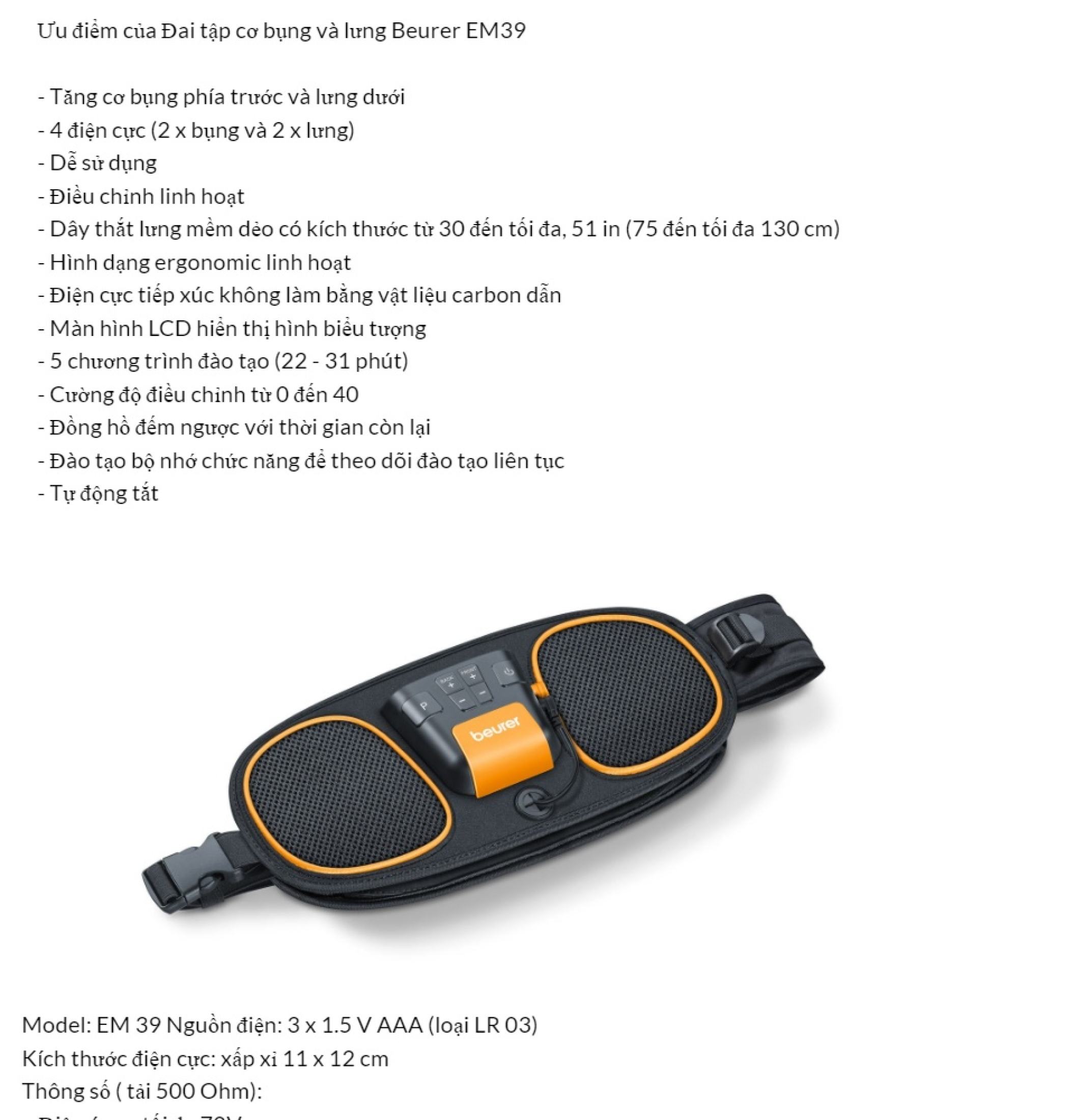 Đai tập cơ bụng và lưng Beurer EM39 giúp tạo cơ bụng, vòng 2 thon gọn