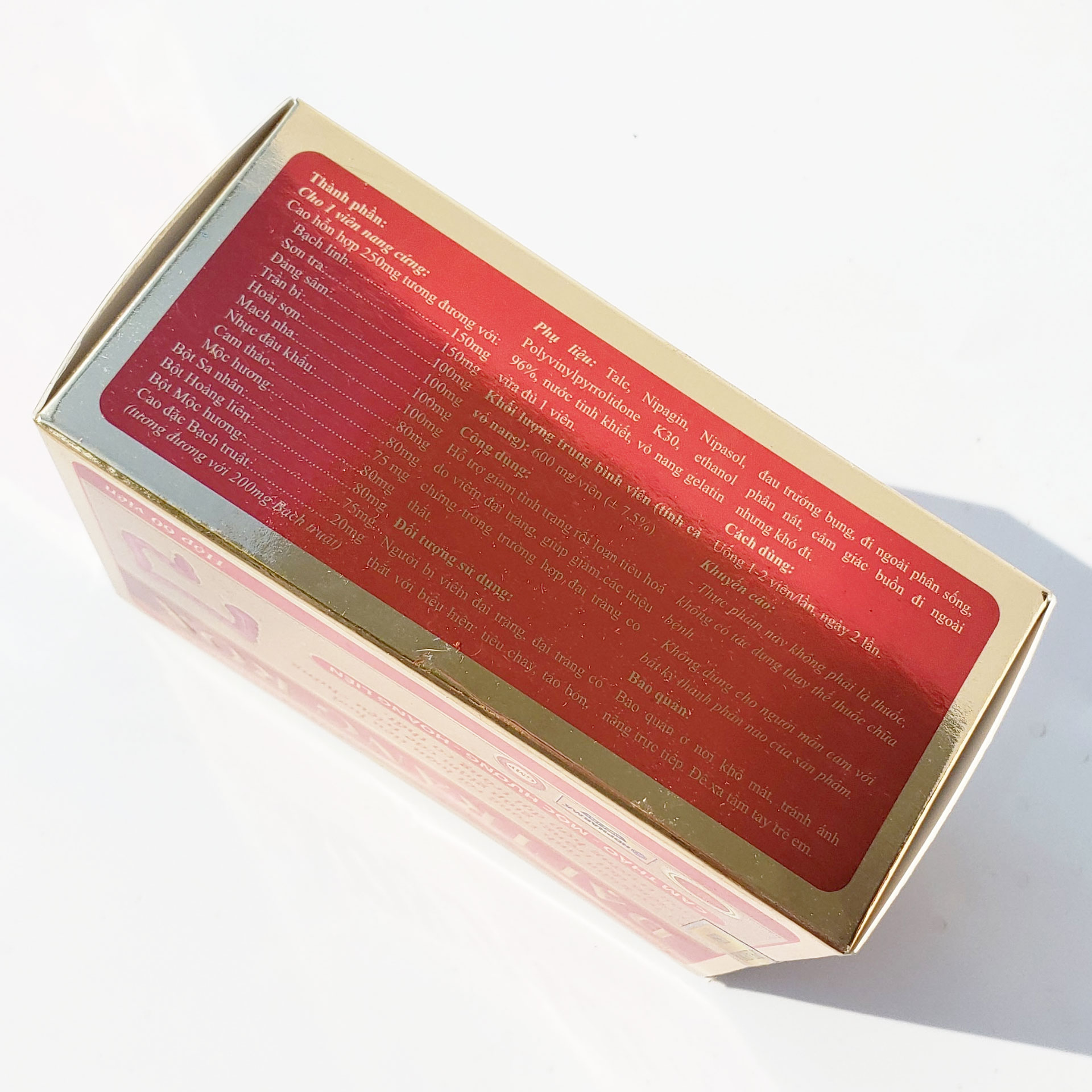 - Người bị viêm đại tràng, đại tràng co thắt với biểu hiện: tiêu chảy, táo bón, đau trướng bụng, đi ngoài phân sống, phân nát, cảm giác buồn đi ngoài nhưng khó chịu. Chống chỉ định – Không sử dụng nếu mẫn cảm với bất cứ thành phần của sản phẩm – Không dùng cho Phụ nữ có thai. – Không dùng cho trẻ em dưới 8 tuổi.
