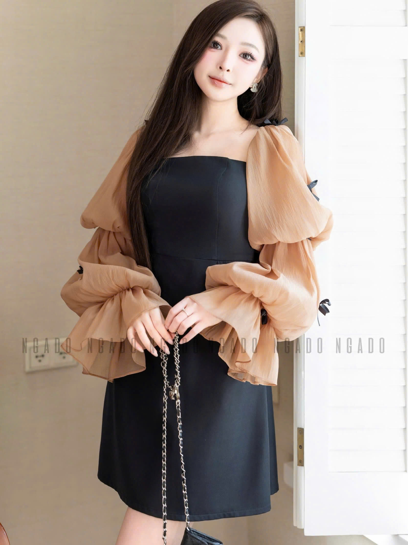 ✨Đầm đen tay voan phồng NGADO , đầm dự tiệc , đầm dạo phố