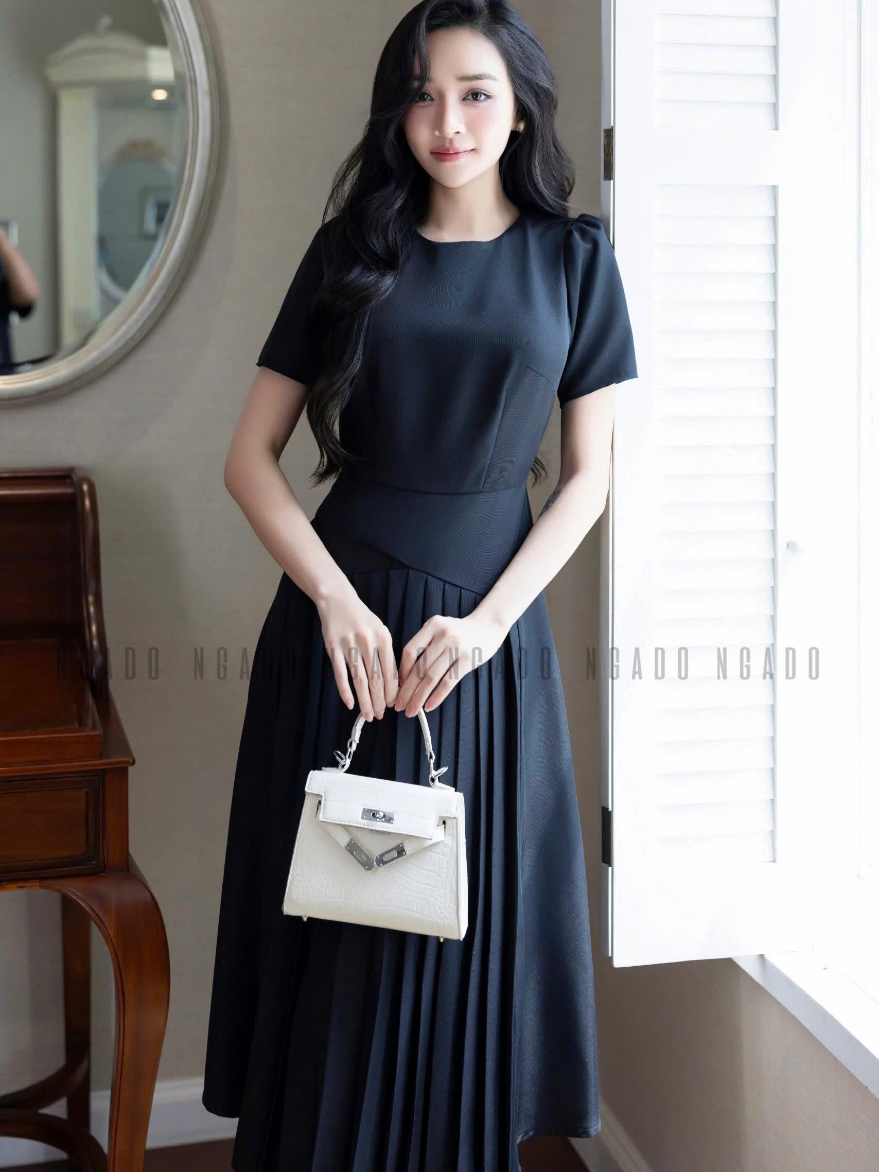 ✨Đầm đen xếp ly cổ tròn NGADO , đầm thiết kế , đầm dự tiệc, công sở