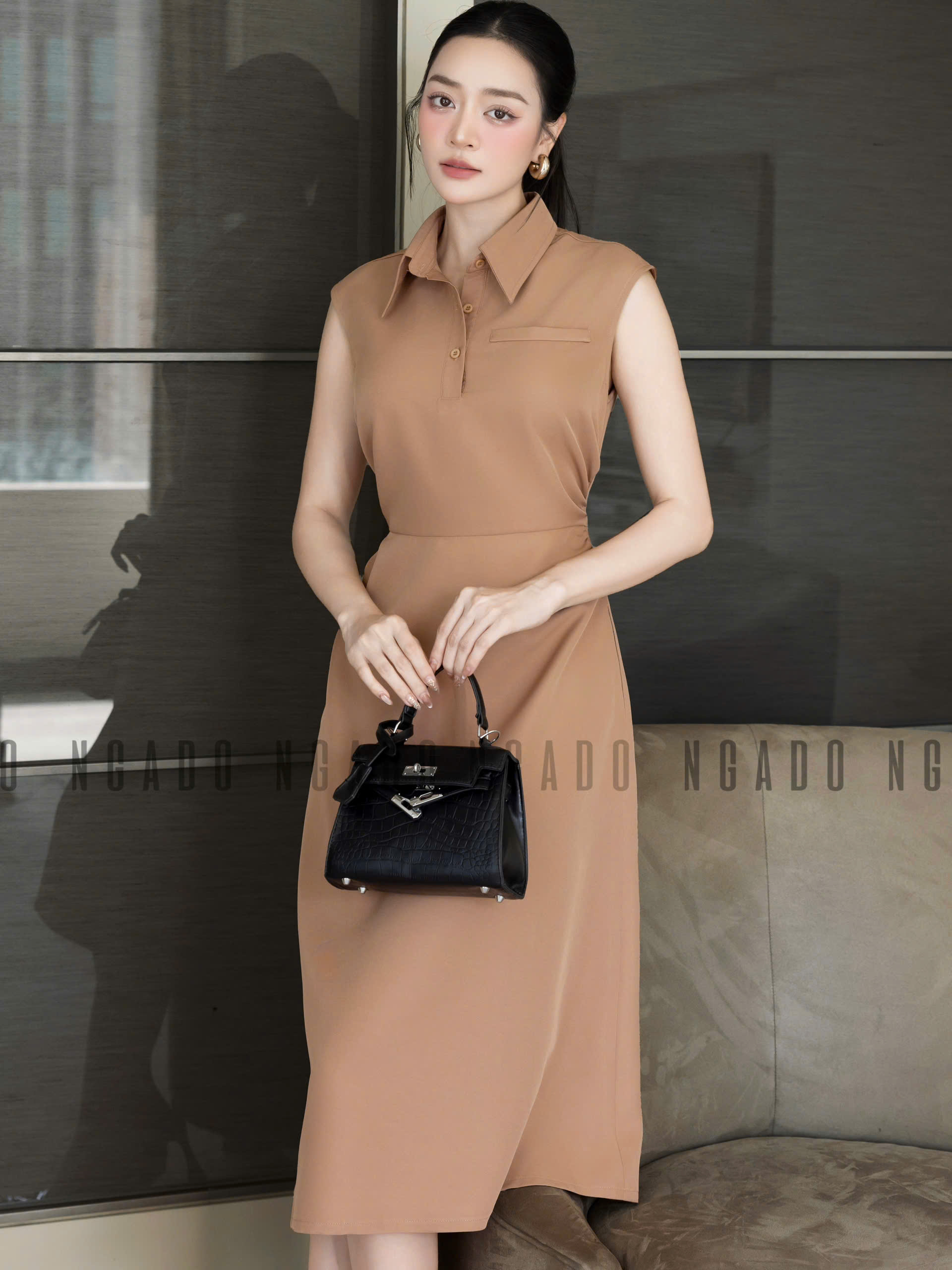 ✨Đầm nâu cổ sơ mi NGADO , đầm công sở , đầm dự tiệc