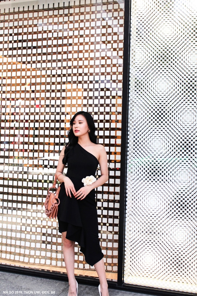 Đầm Ôm Đi Tiệc - tôn dáng kiêu sa - dáng đầm ôm tôn 3 vòng cơ thể từng đường nét - vai đắp xếp ly 1 bên cá tính - cổ tròn - tay sát