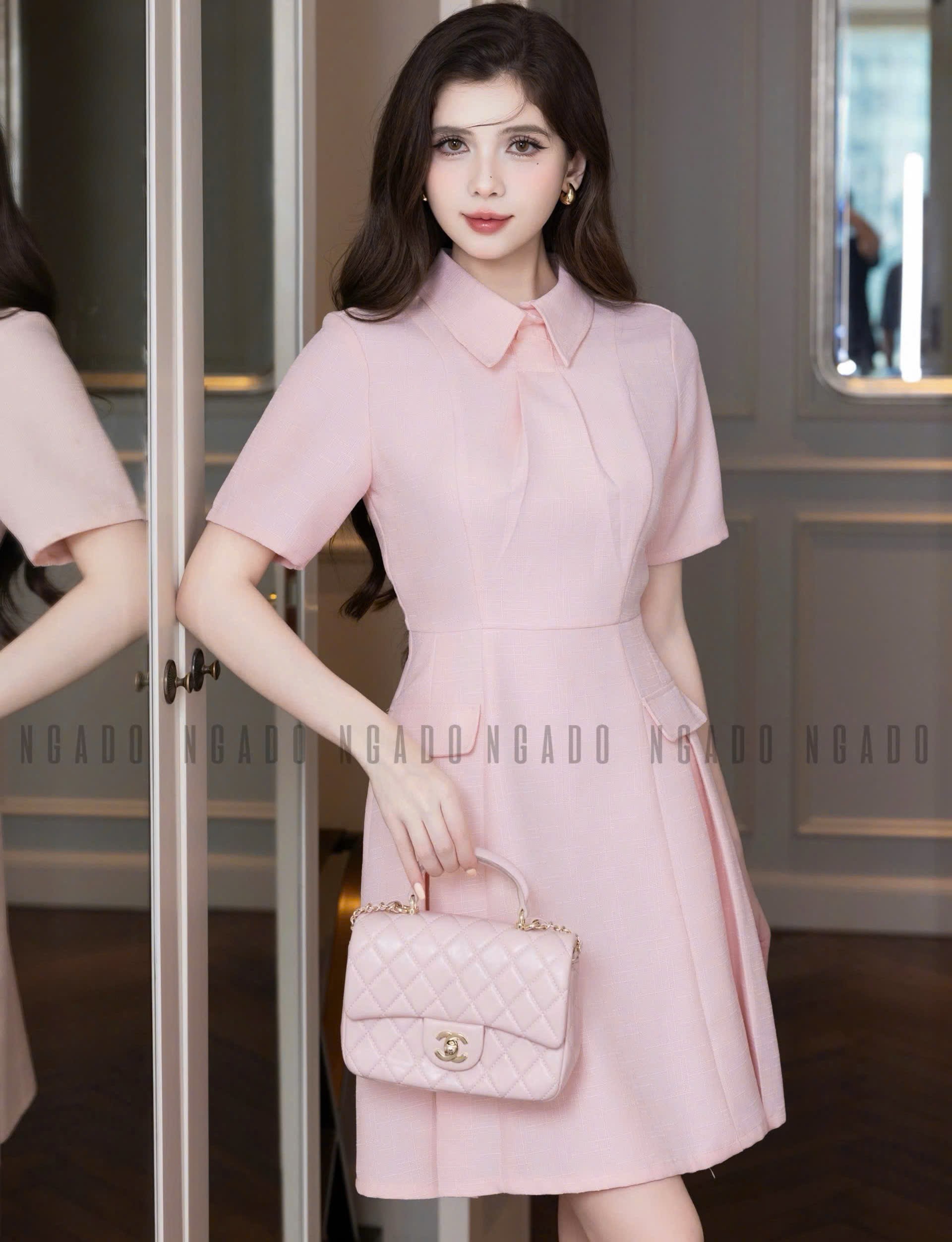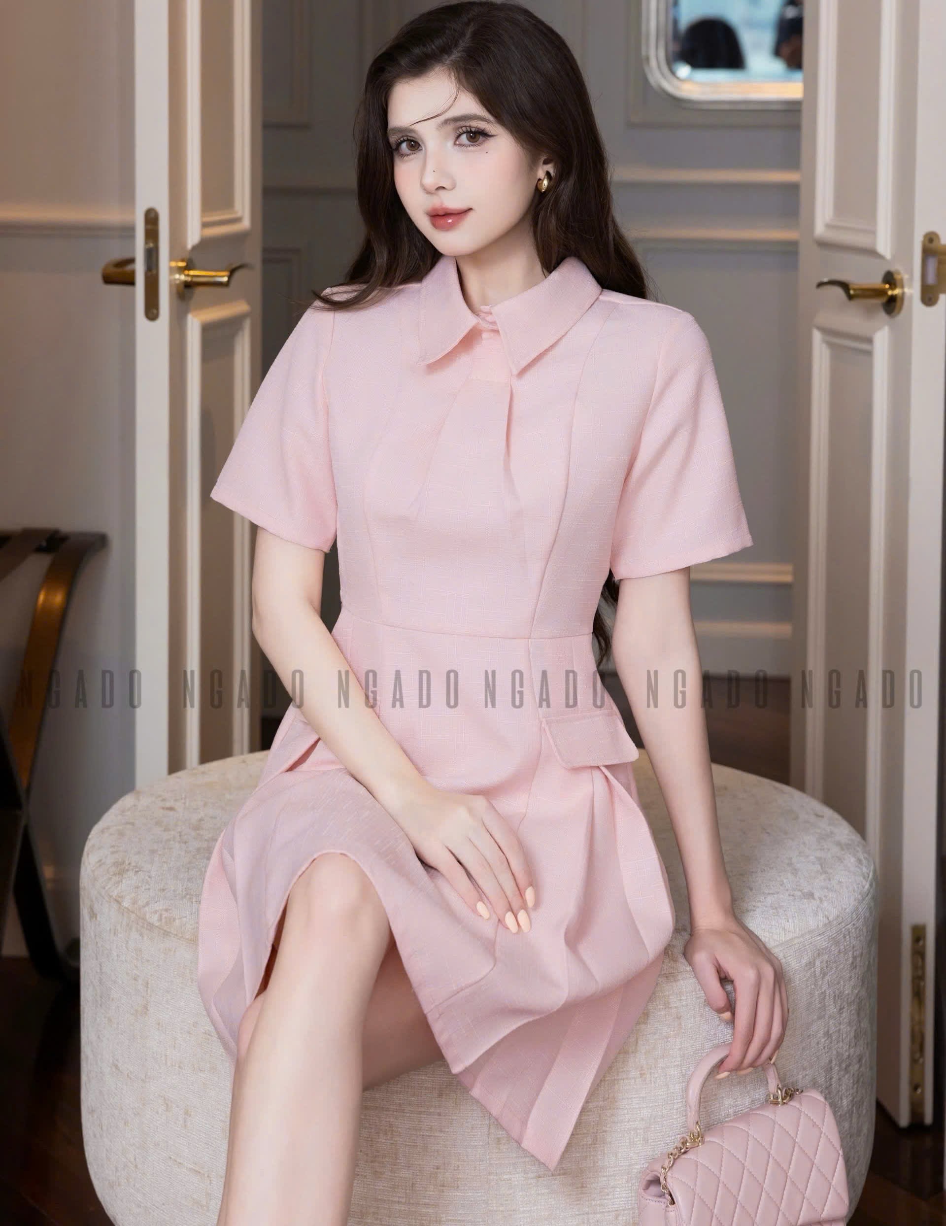✨Đầm sơ mi hồng ngắn tay NGADO , đầm sơ mi , đầm nữ , đầm công sở, dự tiệc
