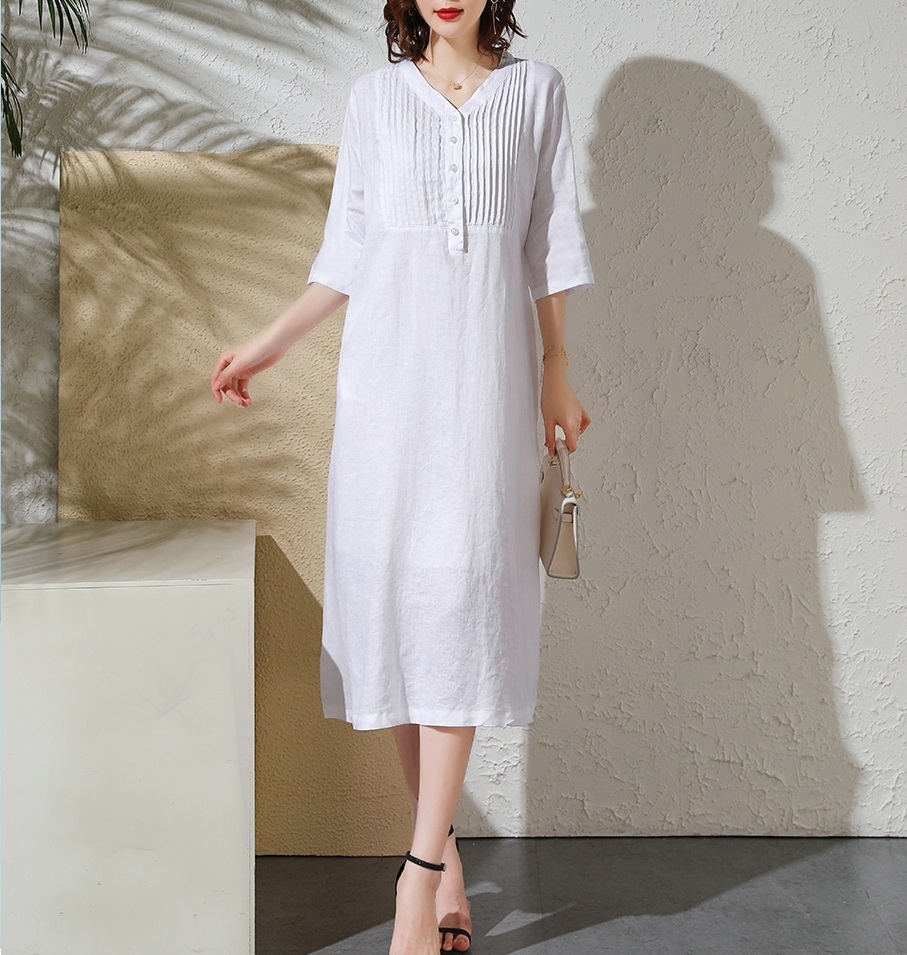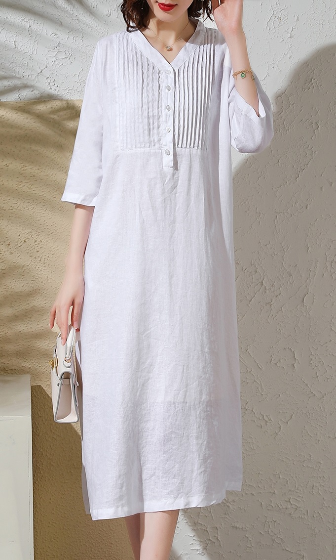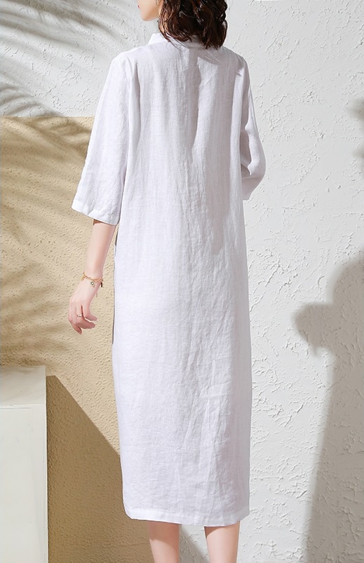 Đầm Sơ Mi Cotton, chất liệu cotton mềm mại, mỏng nhẹ. Phần trước ngực đính hạt tạo hình lá độc đáo. Có túi 2 bên hông, Mặc phối với quần short hoặc legging bên trong.