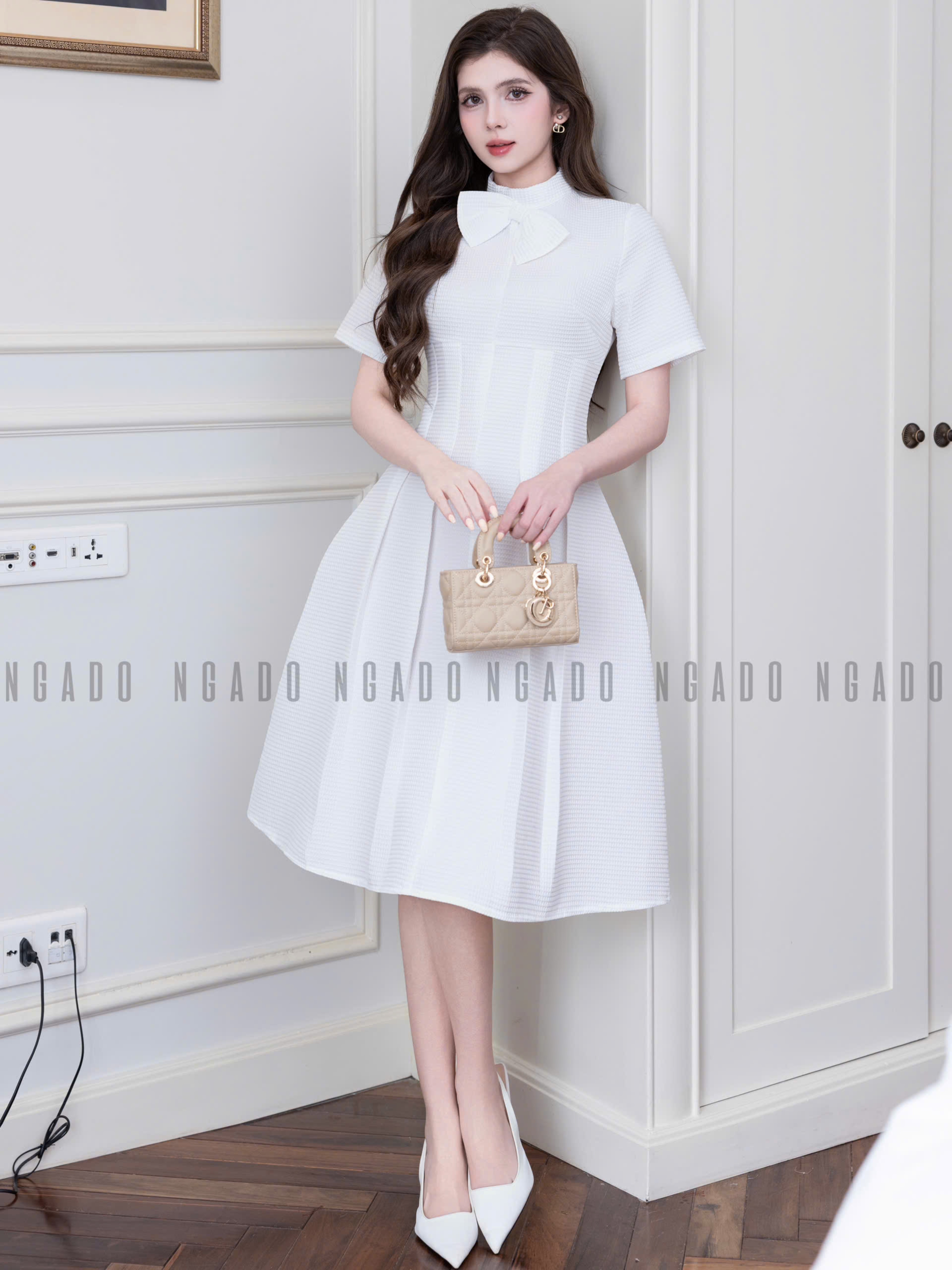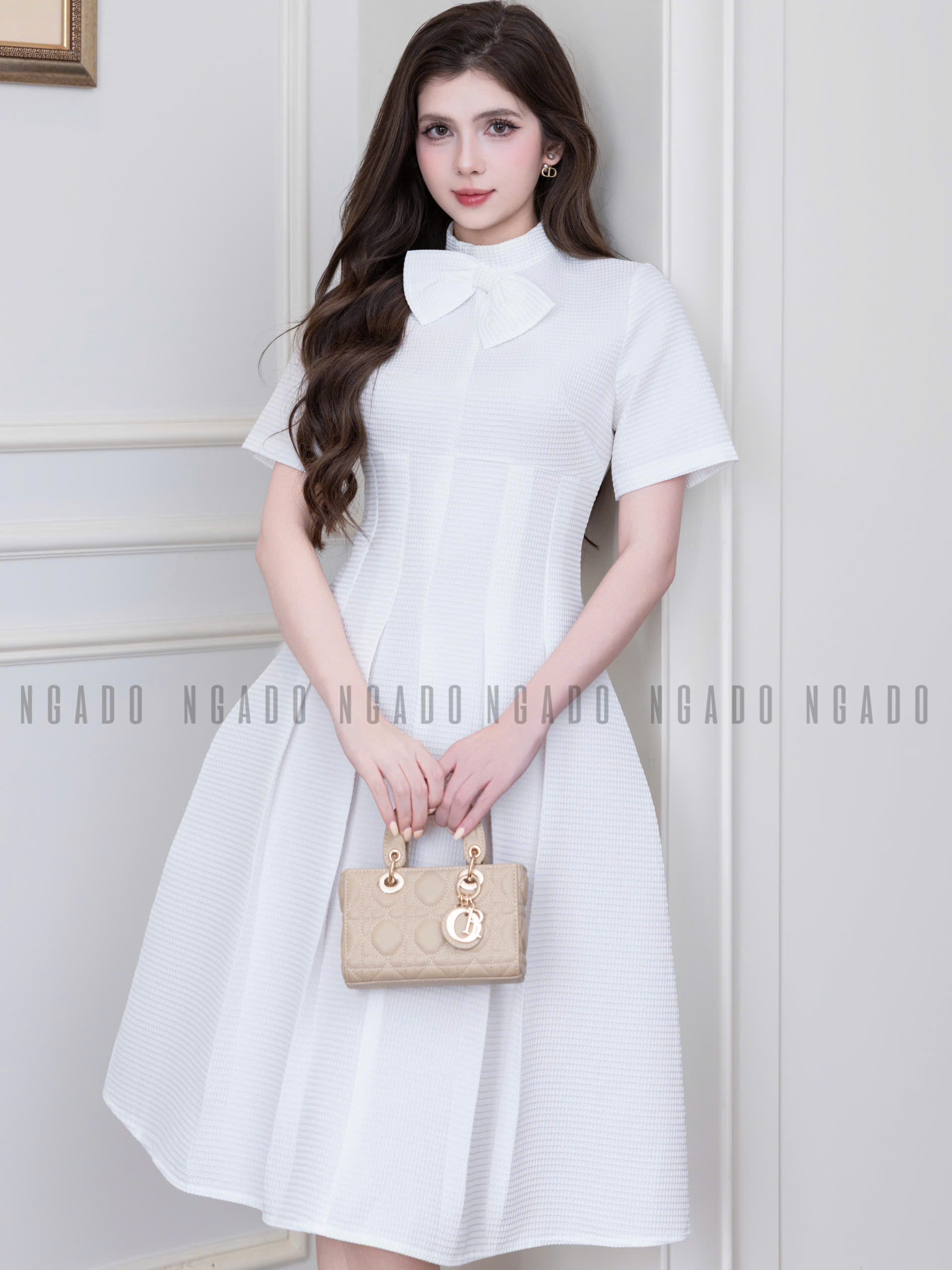 ✨Đầm trắng cột nơ NGADO , đầm kiểu , đầm công sở , đầm đi tiệc
