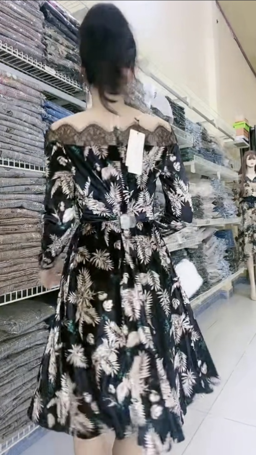 ✨Đầm trễ vai cổ màu nude trùng màu da kín đáo họa tiết chiếc lá trẻ xinh khác biệt.