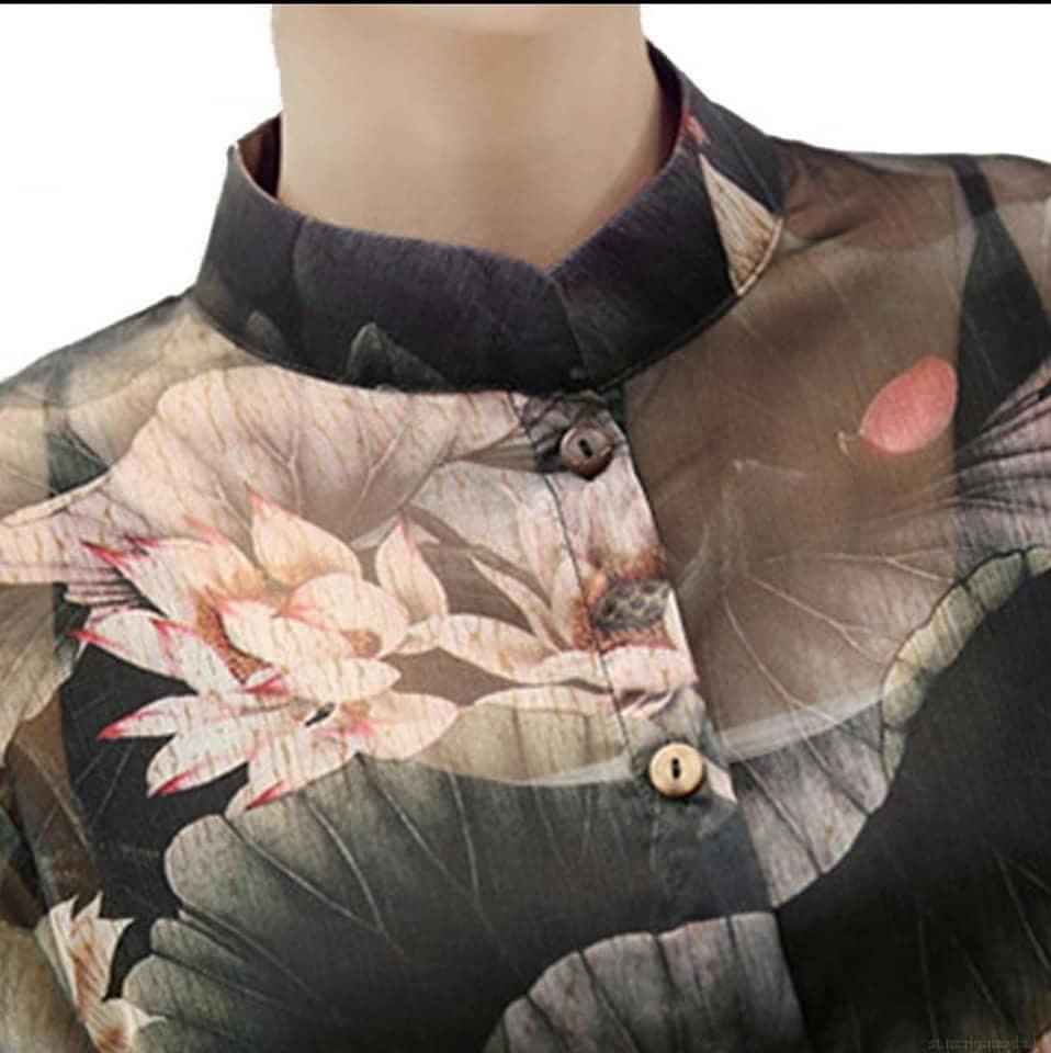 Đầm trung niên họa tiết Kích thước 43-59kg Chất liệu đầm đen thun + áo khoác ngoài voan chiffon họa tiết