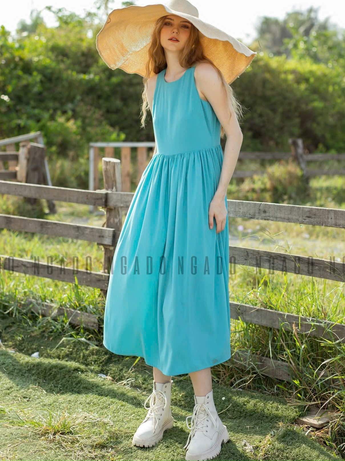 ✨Đầm xanh babydoll sát nách NGADO , đầm nữ , đầm thời trang , váy đi biển