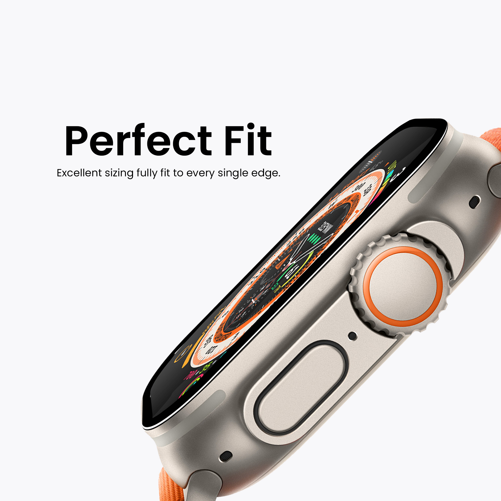 Khả năng tương thích: tương thích với Apple Watch Ultra 3 49mm 2025 ; không dành cho Apple Watch Series 11/10/9/8/7/6/5/4/3/2/1 và Apple Watch SE1/SE2/SE3 Bảo vệ màn hình tối ưu: Kính cường lực có