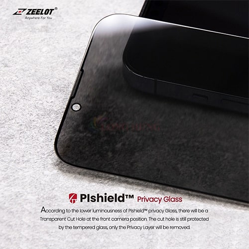 Một chiếc kính cường lực Zeelot full màn hình, trong, trơn láng, cứng, bền cho iPhone 14 Pro Max.