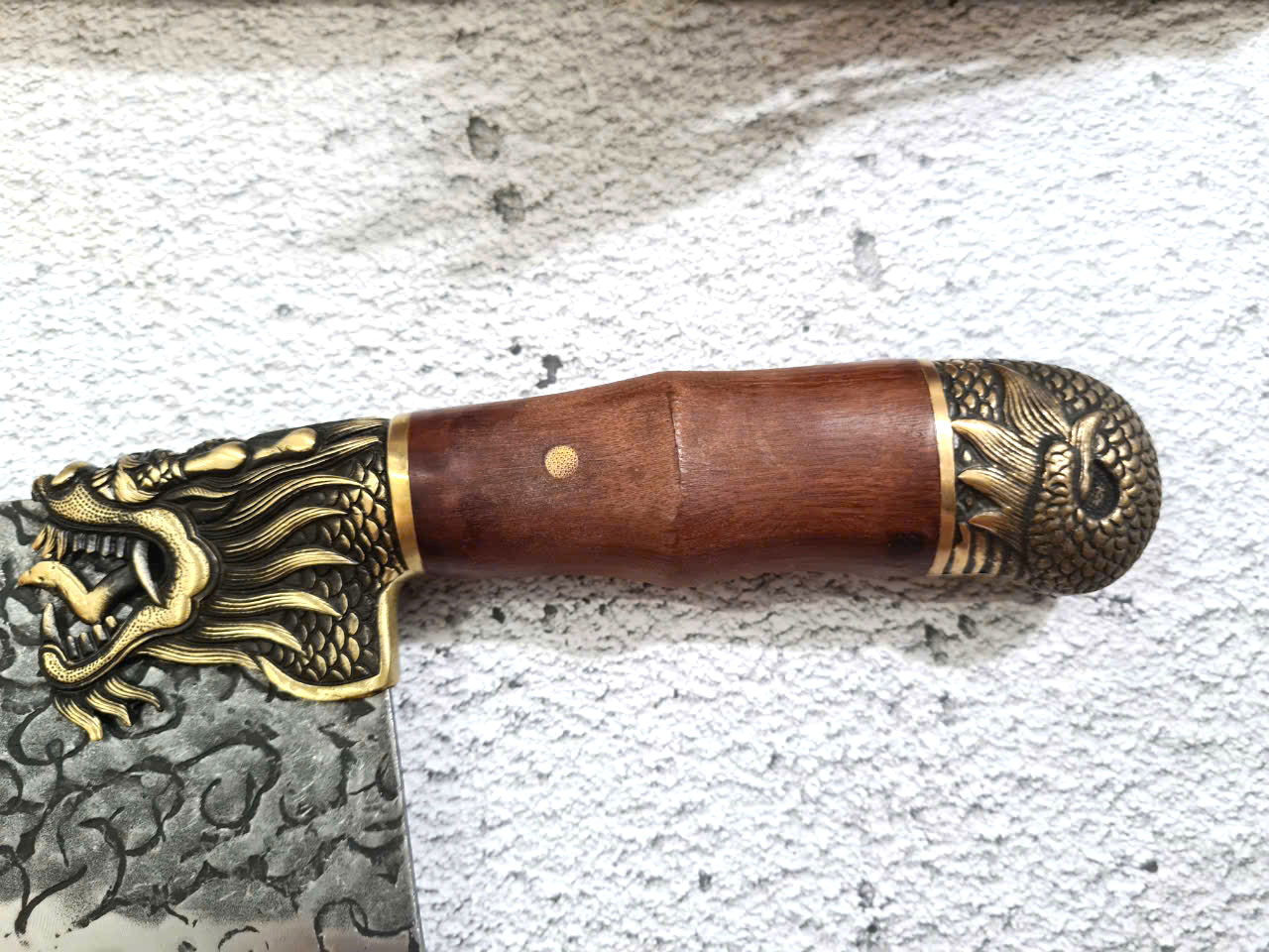 DAO PHÚC SEN - Dao Thái 22 cán mun khâu đồng đỏ - Chức năng: chuyên thái thịt và rau củ - Kích thước: Lưỡi: 22cm, cán: 12cm, rộng: 7,5cm, dầy: 1ly, trọng lượng: 280g