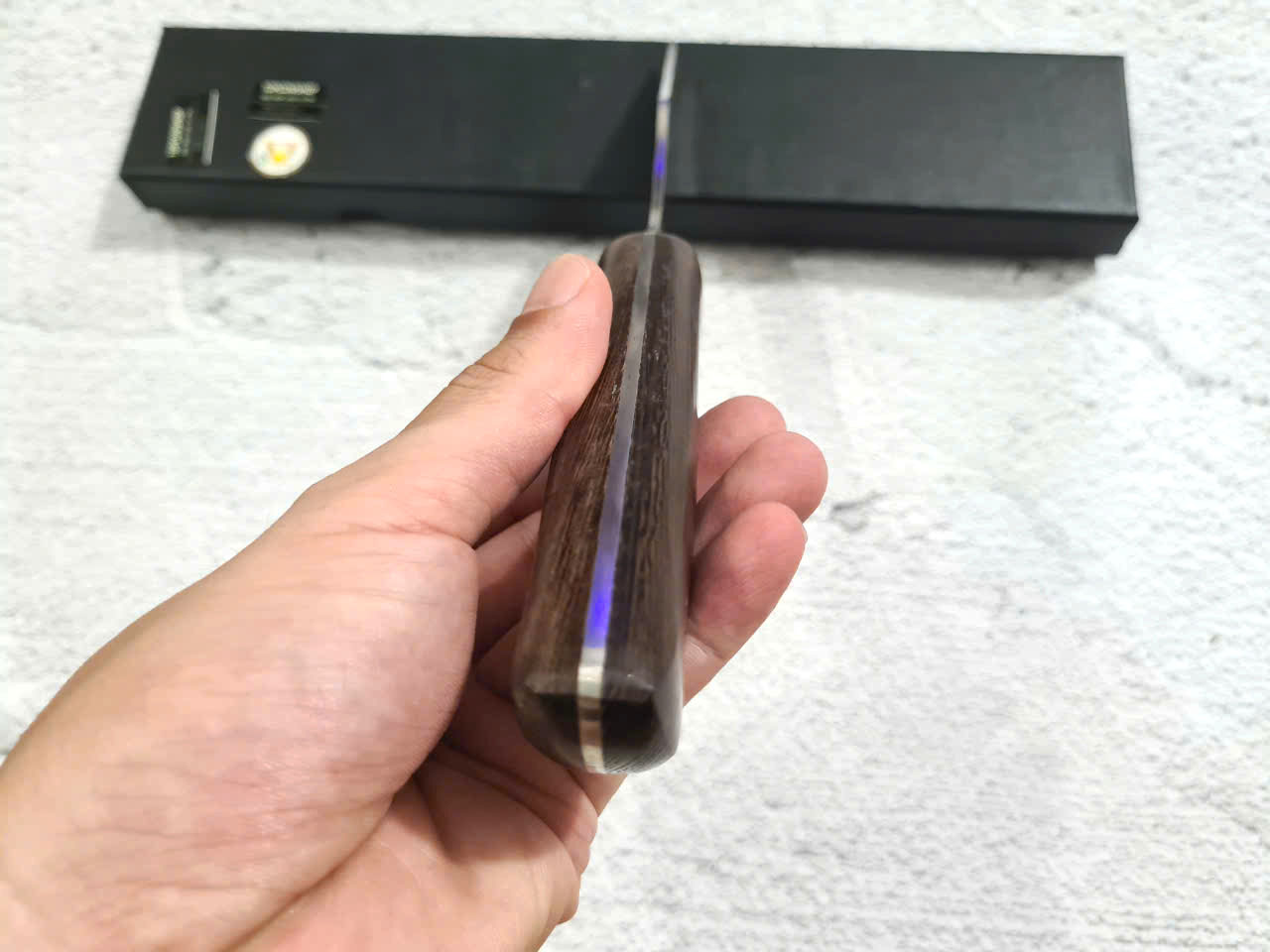 Dao Phúc Sen - Dao thái USUBA vỏ gỗ cẩm chỉ - Chức năng: thái thịt, rau củ quả - Kích thước: Lưỡi: 17cm, cán: 12cm, rộng: 5cm, dầy: 1ly, trọng lượng: 200g - Vỏ