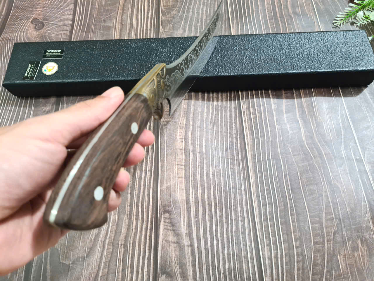- Chất liệu: 100% thép nhíp ô tô được lựa chọn và kiểm duyệt kỹ càng. - Chất liệu cán: gỗ cẩm chỉ núi - Kích thước: lưỡi: 18cm, cán: 12cm, rộng: 6,5cm, dầy: 0,1,