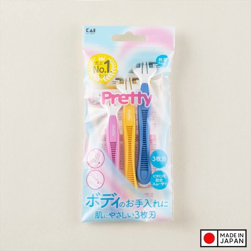 Set 03 chiếc dao cạo Kai Pretty Body, thiết kế 3 lưỡi kép tạo ra những đường cắt nhanh và hiệu quả hơn - nội địa Nhật Bản Chất liệu: Lưỡi bằng thép không
