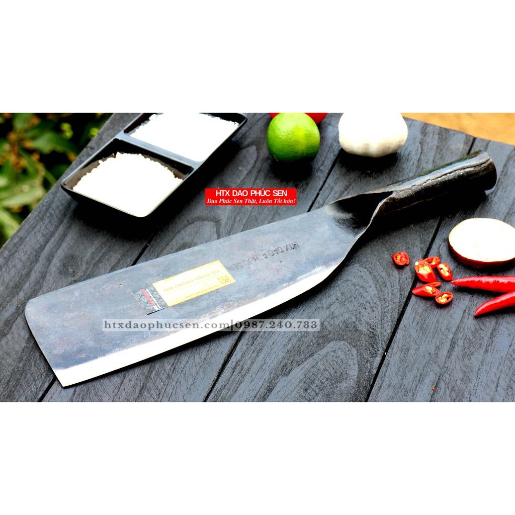 Dao Phúc Sen - Dao Chặt Xương Mới - Chức năng: Chặt xương ống, chân giò, trâu bò - Kích thước: Lưỡi: 22cm, cán: 12cm, rộng: 11cm, dầy: 4ly, trọng lượng: 800g + 100% nguyên