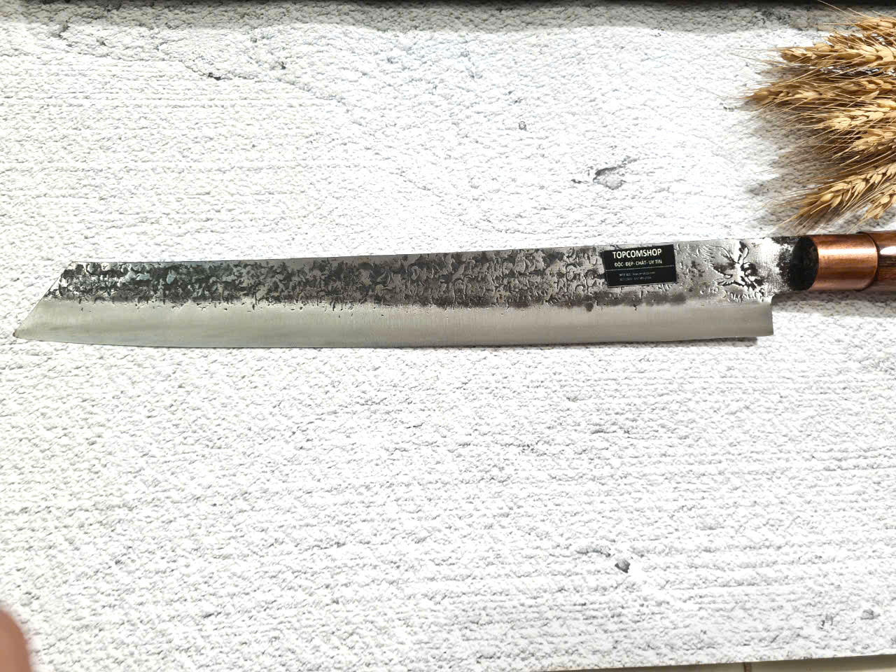 Dao Phúc Sen bản Takohiki - Kích thước: lưỡi: 24cm, cán: 12cm, rộng: 3.5cm, dầy: 2.5 ly, trọng lượng: 200g - Chức năng: sử dụng chuyên thái thịt ,cá, rau củ và các thực phẩm