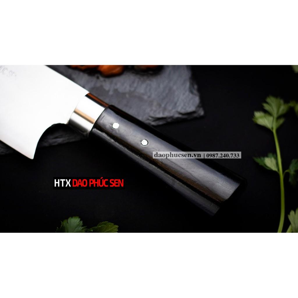 Dao Phúc Sen - Dao Thái Nhỏ Mini (Vỏ Gỗ Cẩm Chỉ) - Chức năng: chuyên chặt thái cá, chặt gà, lọ - Kích thước: Lưỡi: 26cm, cán: 12,5cm, rộng: 6,5cm, dầy: 4ly, trọng lượng: