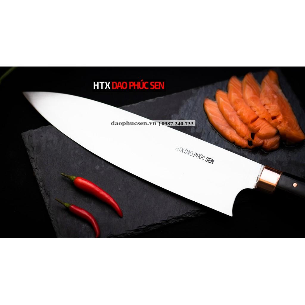 - Chức năng: chuyên chặt thái cá, chặt gà, lọ - Kích thước: Lưỡi: 26cm, cán: 12,5cm, rộng: 6,5cm, dầy: 4ly, trọng lượng: 480g - Cán : Gỗ mun , Khâu và chốt đồng đỏ