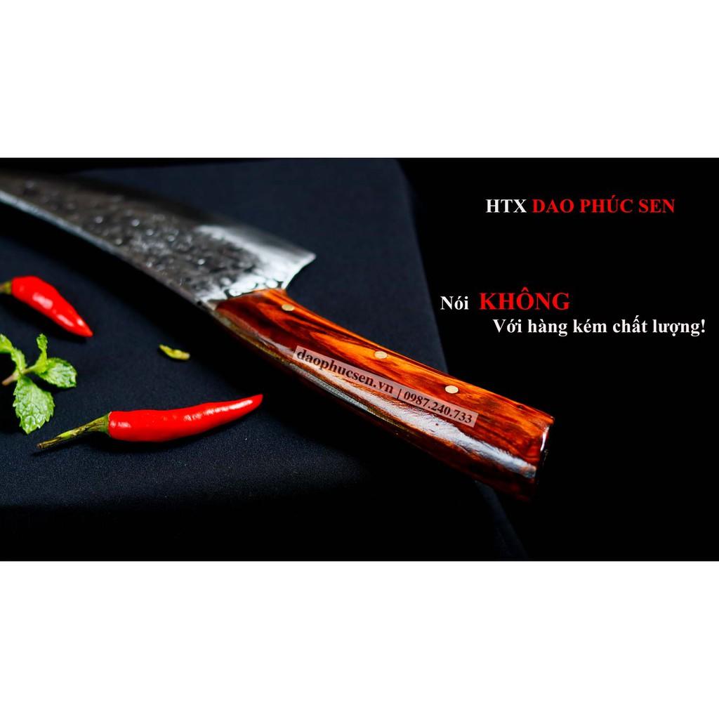 Tên sản phẩm: Dao Phúc Sen, Dao Thái Kiểu 03 Cán Gỗ Cẩm - Chức năng: chuyên thái thịt, rau củ - Chất liệu: 100% thép nhíp ô tô được lựa chọn và kiểm duyệt