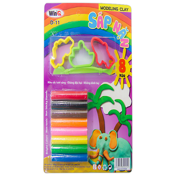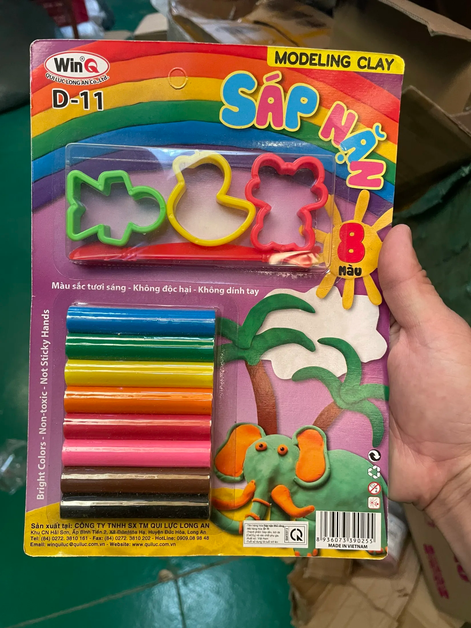 Mua tại TiktokĐất Nặn 8 Màu WinQ D-11 Giới thiệu Bộ sản phẩm bao gồm đất nặn và dụng cụ tạo hình bằng nhựa. Đất nặn được làm từ chất liệu cao cấp, không bị khô cứng dễ tạo hình, không chứa Gluten độc hại, có mùi thơm và rất an toàn cho sức khỏe của bé. Đặc điểm nổi bật: Đất nặn mềm dẻo, màu sắc đa dạng và tươi sáng. Bé dễ dàng tạo hình, vẽ tranh, học thủ công, nặn trang trí. Dụng cụ giúp bé vừa chơi vừa học, vừa rèn luyện được sự khéo léo, sáng tạo, trí tưởng tượng phong phú,... Thông tin sản phẩm Quy cách: 8 màu Đơn vị tính: Vỹ/Thùng Đóng gói: 1/80 Xuất xứ: Việt Nam
