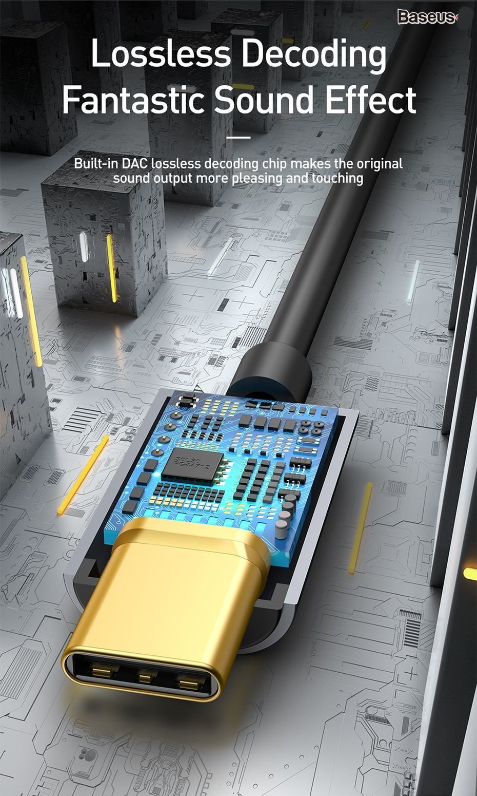 ✨Đầu chuyển Type C sang Audio AUX 3.5mm Baseus L54 (Type-C Male to 3.5mm Female Adapter, built-in DAC, 24-bit/48kHz)-Hàng Chính Hãng