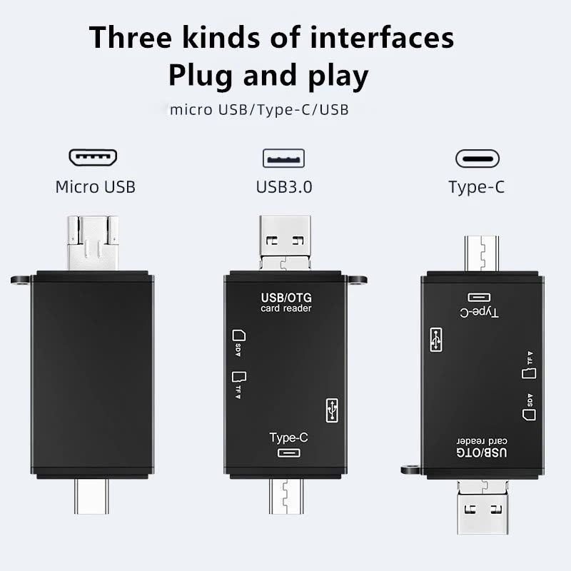 Chi tiết sản phẩm: Tên: Loại giao diện 6 TRONG 1: USB 2.0, Micro USB, Loại C, Khe cắm thẻ nhớ TF và Giao diện USB và khe cắm SD Chất liệu: ABS Kích