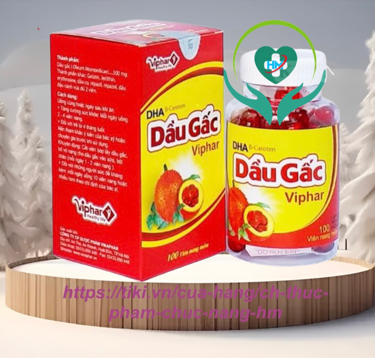 - CÁCH DÙNG Uống cùng hoặc sau khi ăn. Để phòng chống bệnh tật, bổ sung vi chất, tăng cường sức khỏe: Mỗi ngày uống 2-4 viên nang. Đối với trẻ sơ sinh (từ tháng 4 trở đi): cho dầu gấc vào sữa, bột cháo, mỗi ngày cho trẻ dùng 1-2 viên nang. Đối với những người viêm gan, xơ gan, hoặc đang xạ trị: mỗi ngày uống 10 viên hoặc theo chỉ định của bác sỹ. Uống duy trì sức khỏe, dưỡng da cho phụ nữ: mỗi ngày uống 4 viên nang. * LƯU Ý : Bảo quản : Nơi khô ráo, thoáng mát, tránh ánh sáng. **XUẤT XỨ VÀ THƯƠNG NHÂN CHỊU TRÁCH NHIỆM VỀ CHẤT LƯỢNG HÀNG HÓA CÔNG TY CP DƯỢC PHẨM VINAPHAR ĐỊA CHỈ : AN THỌ - AN KHÁNH - HÀ NỘI