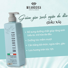 - Dầu xả Giảm gàu, sạch ngứa da đầu Milanogica: bổ sung dưỡng chất giúp tăng sinh biểu bì, dịu ngứa, giảm mẩn đỏ, giảm gàu, giảm rụng tóc, trẻ hoá da đầu. Giảm mẫn cảm, khô, bong tróc hiệu quả, nuôi dưỡng da đầu mỏng yếu dài lâu.
