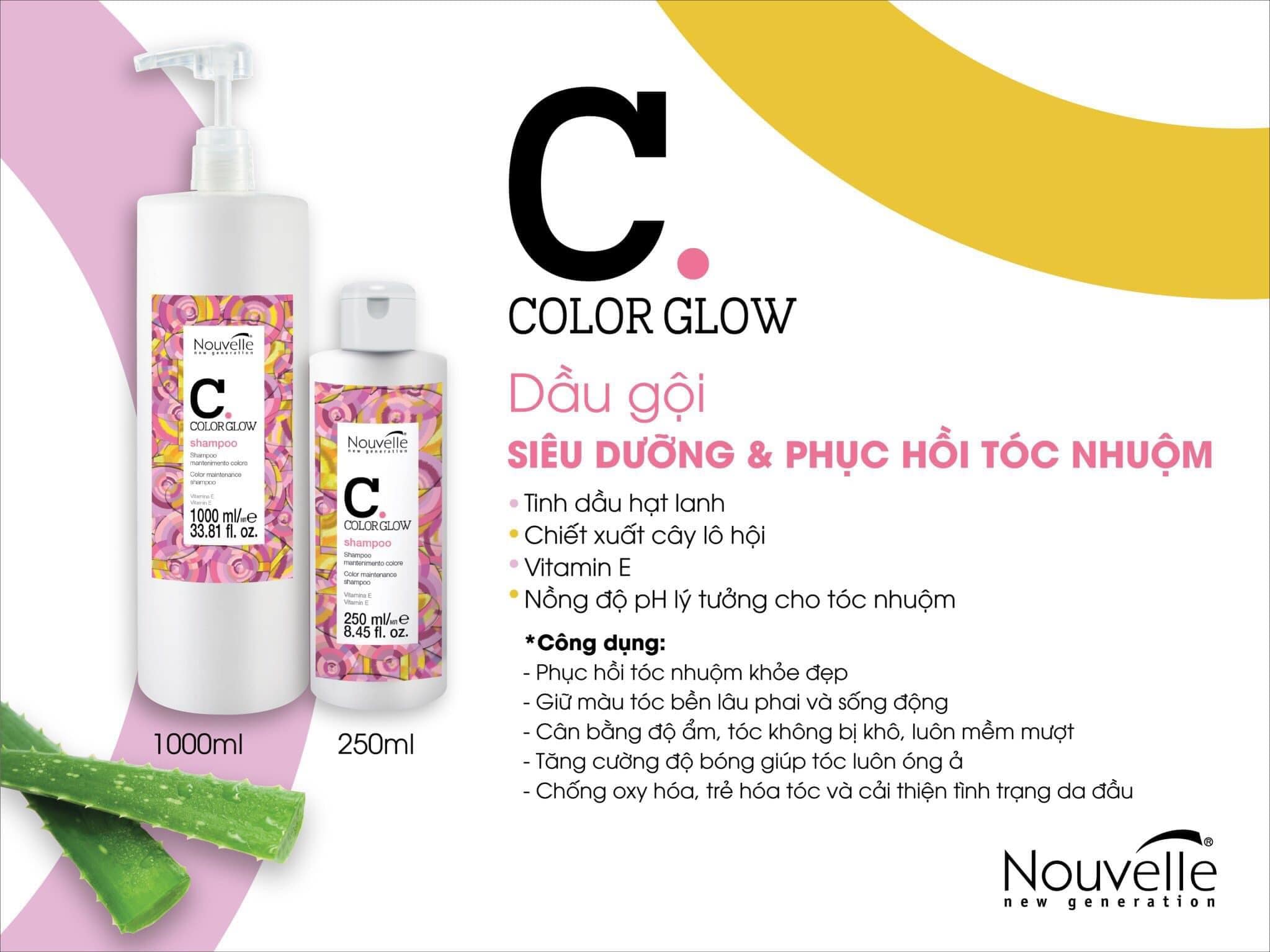 DẦU GỘI DƯỠNG VÀ PHỤC HỒI TÓC NHUỘM (Nouvelle New Generation Color Glow Color Maintenance Shampoo) Thông tin chi tiết Công dụng: Dầu gội dưỡng tóc, phục hồi tóc nhuộm, giữ màu tóc bền đẹp. Các thành phần dưỡng chất nguồn gốc thiên nhiên bảo dưỡng tóc tối đa; tinh dầu hạt lanh kết hợp tinh chất chiết xuất từ cây lô hội và Vitamin E giúp tóc bóng, chắc, khỏe, cân bằng độ ẩm, làm chậm quá trình oxy hóa, giúp tóc mềm mượt, giữ màu tóc nhuộm lâu phai. Công thức tối ưu đẩy lùi quá trình lão hóa tóc. Cách dùng: Làm ướt tóc, bôi sản phẩm lên tóc và da đầu, xoa nhẹ khắp da đầu và tóc, sau đó xả sạch bằng nước. Gội lặp lại nếu cần. Đóng gói: 250ml