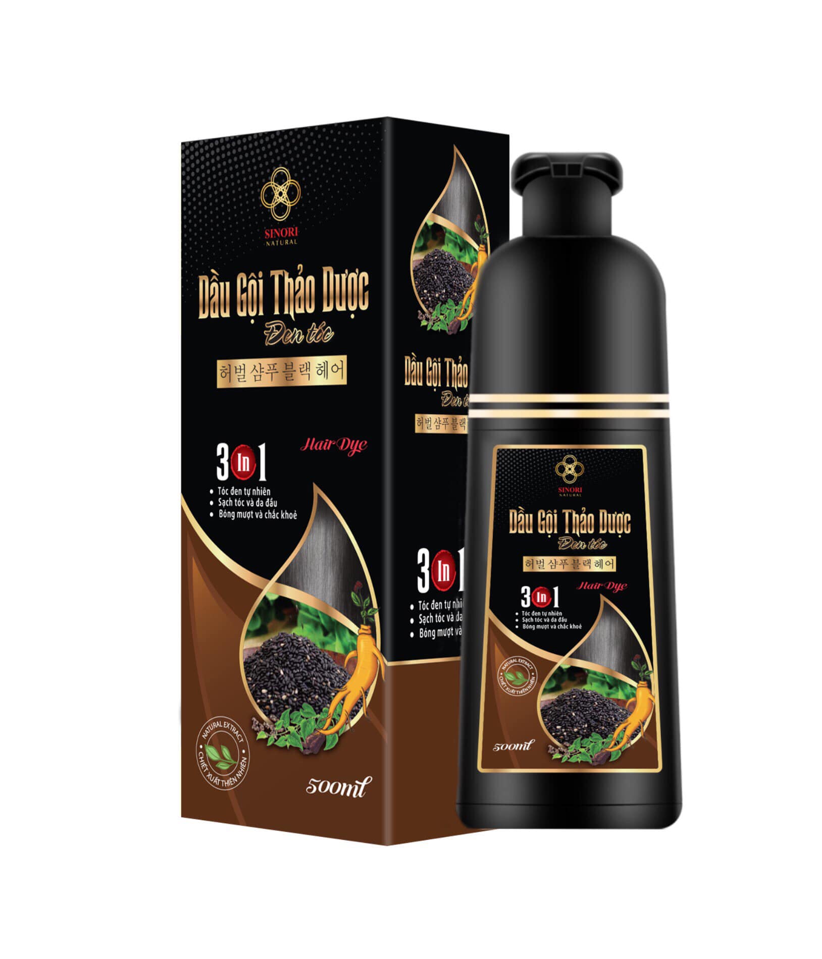 DẦU GỘI THẢO DƯỢC NHUỘM ĐEN/NÂU TÓC SINORI CHAI 500 ML