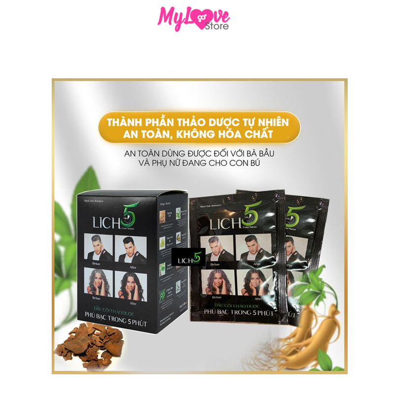 ✨Dầu Gội Phủ Bạc Tóc Lich5 Thảo Dược Đen Tóc Chỉ Trong 5 Phút, An Toàn, Không Hóa Chất, Giữ Màu 3 - 4 Tuần, Hộp 10 gói mylovestore