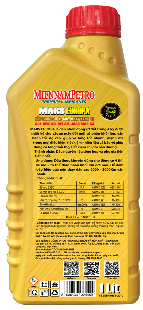✨Dầu Nhớt MiennamPetro Mars Europa 4T 10W-40 API SN JASO MA2 1L Bảo Vệ Động Cơ Xe Máy 4 Thì Và Tiết Kiệm Nhiên Liệu