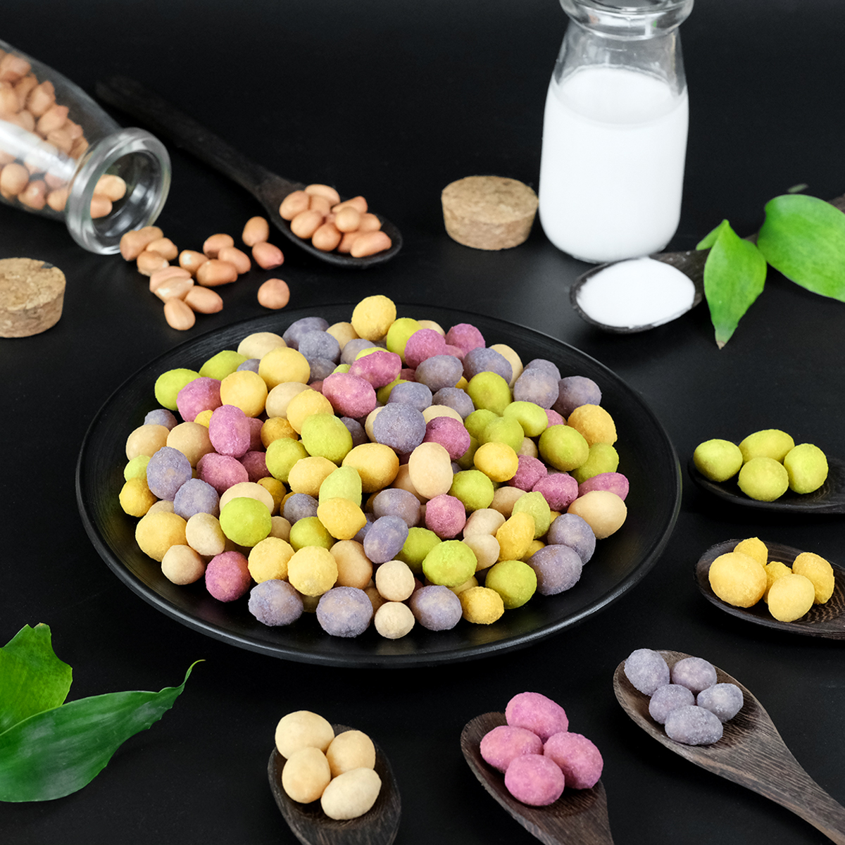 SỮA CHUA KẾT HỢP VỚI ĐẬU PHỘNG? BẠN ĐÃ TỪNG THỬ HAY NGHE QUA BAO GIỜ CHƯA? Từng hạt đậu phộng no tròn được sàn lọc kỹ càng có độ béo bùi tuyệt đỉnh được khoác lên mình chiếc áo bằng sữa chua dịu ngọt tạo nên cảm giác béo thơm, giòn tan, ngọt lịm ngay trong miệng. Tin tôi đi, bạn sẽ mê đắm mình trong hương vị mới lạ này đấy! Không chỉ dừng lại ở đấy, DGfoods còn sử dụng màu sắc sẵn có từ thiên nhiên. Cụ thể là từ lá dứa, lá cẩm, hoa đậu biếc, hạt dành dành để tạo nên màu sắc bắt mắt cho sản phẩm. Màu sắc đa dạng từ những nguyên liệu tự nhiên tạo nên sự hài hòa đẹp mắt, ăn không chỉ ngon về mặt chất lượng mà còn phải “ngon” về cả mặt hình thức.