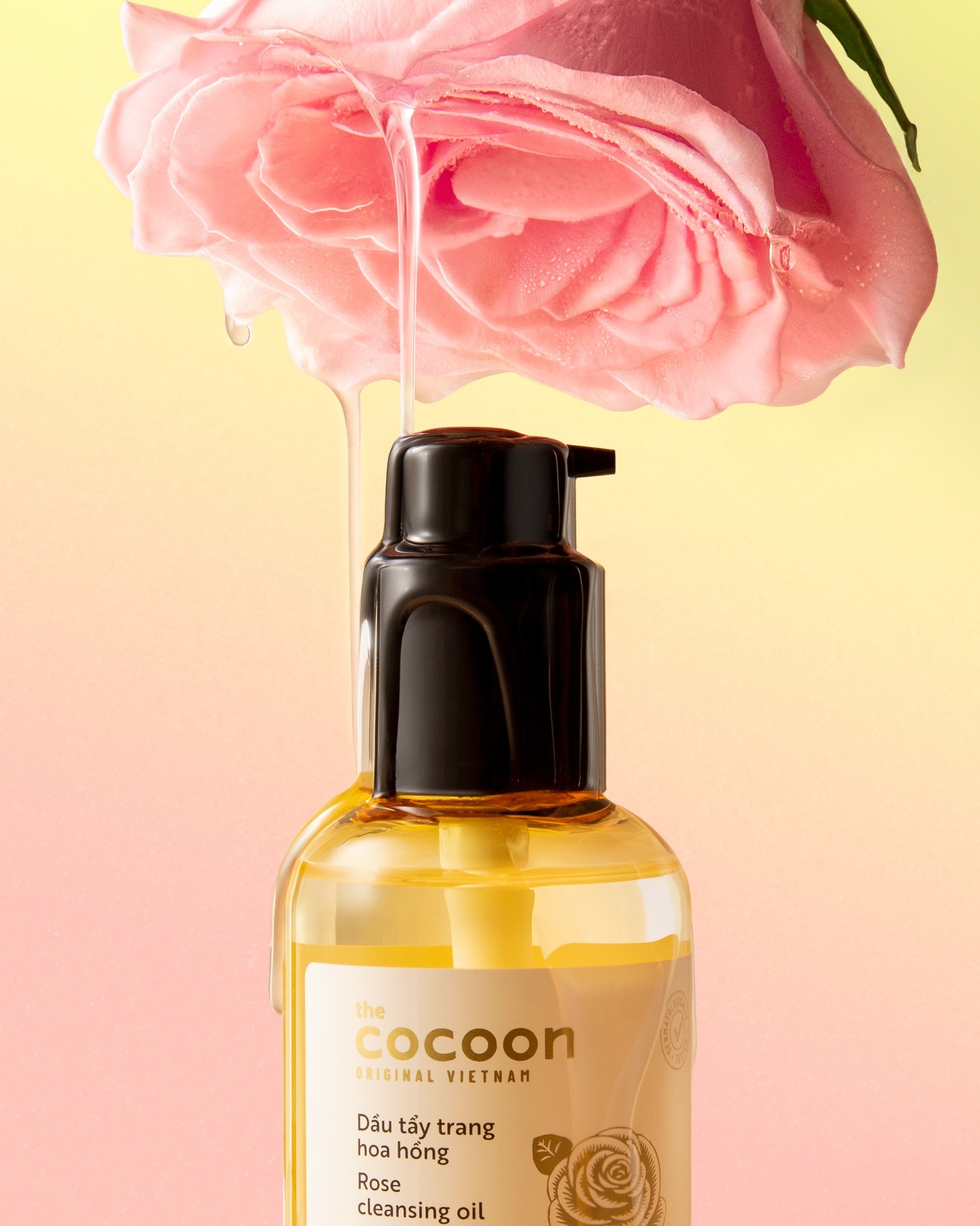 Dầu Tẩy Trang Hoa Hồng Cocoon Thuần Chay 140ml Dầu tẩy trang hoa hồng cocoon (rose cleansing oil) mỹ phẩm thuần chay giúp làm sạch sâu lớp trang điểm, bụi bẩn và dầu thừa, dưỡng ẩm mà không để lại cảm giác nhờn rít khó chịu. Công dụng Dầu tẩy trang hoa hồng cocoon