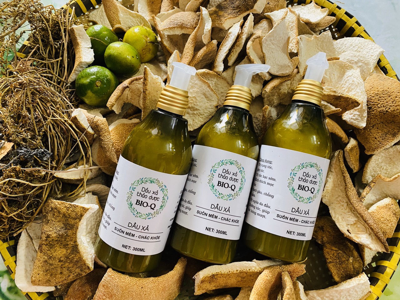 Dầu xả thảo dược BIO_Q cải tiến từ công thức cũ cô đặc hơn- tiết kiêm hơn- dung tích nhiều hơn. Dầu gội thảo dược-hữu cơ thành phần chính 100% đều là các thảo dược tự nhiên: TINH DẦU VỎ BƯỞI, SẢ, CHANH, MÀN TRẦU, NHA ĐAM, HƯƠNG NHU, GỪNG, DẦU OLIVE. Không chứa chất bảo quản, chất tao mùi, chất tạo bọt, không chứa silicone an toàn 100% cho người dùng, không gây kích da dầu, không tổn thương chân tóc