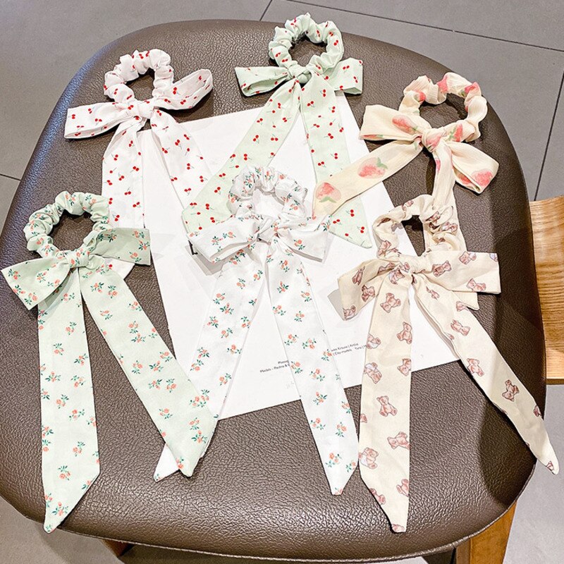 ✨Dây buộc tóc đính nơ in họa tiết dễ thương
