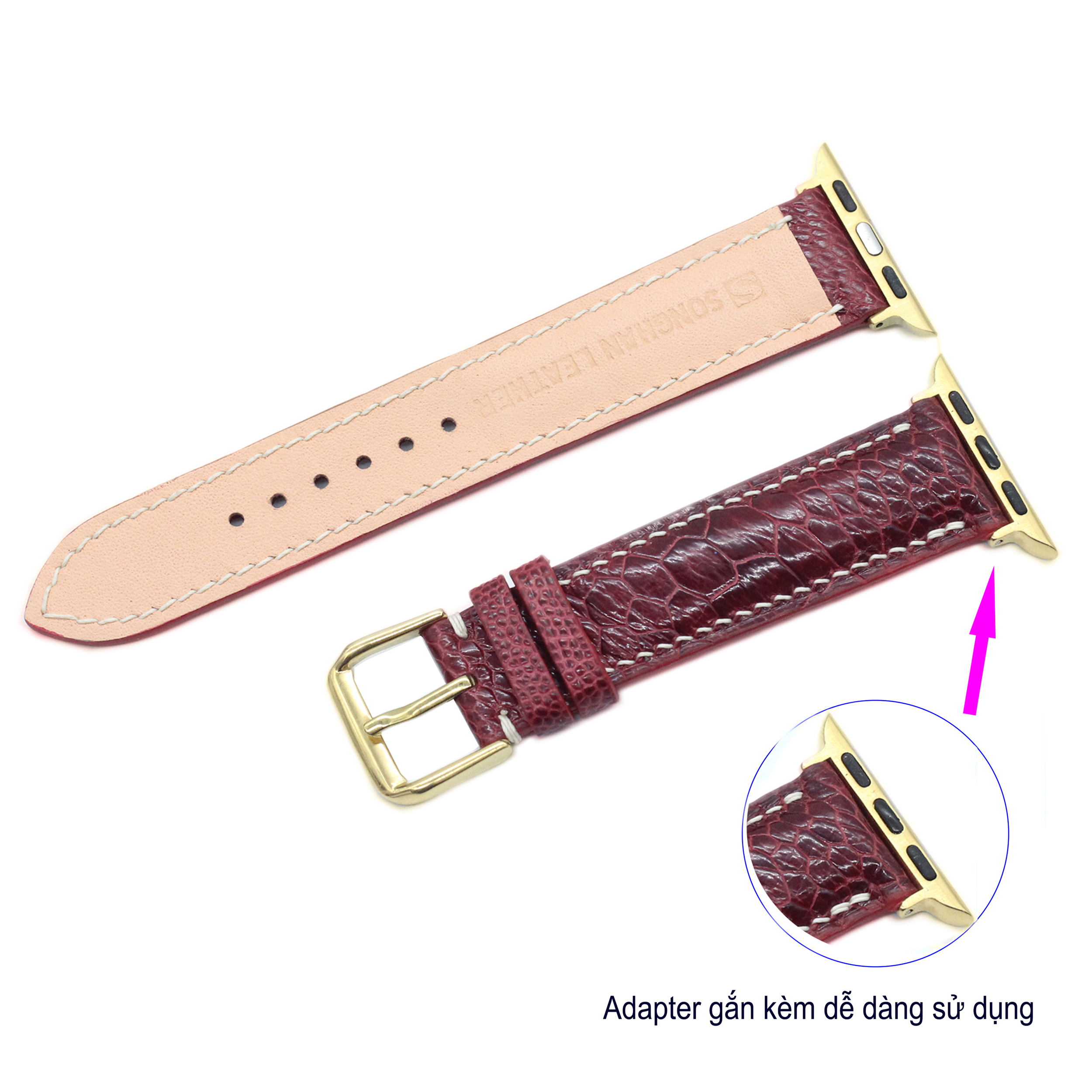 Dây da Apple Watch ĐÀ ĐIỂU handmade cao cấp nhiều màu chỉ trắng size 20mm, 22mm