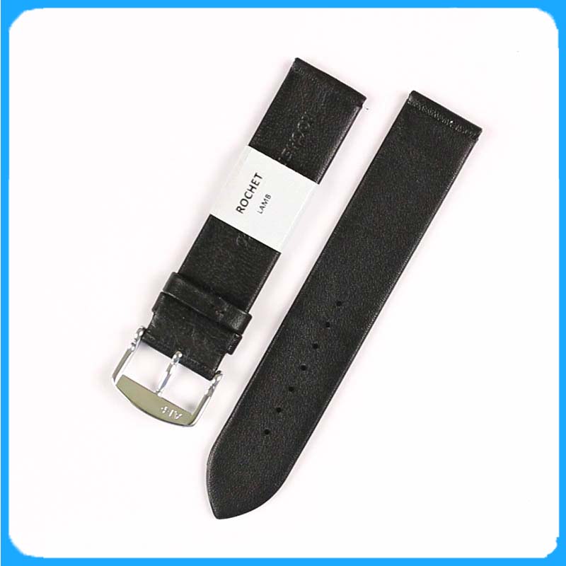 Dây Da Đồng Hồ ZRC Pháp Dòng TRENDY Da Cừu Đen Phẳng Mỏng