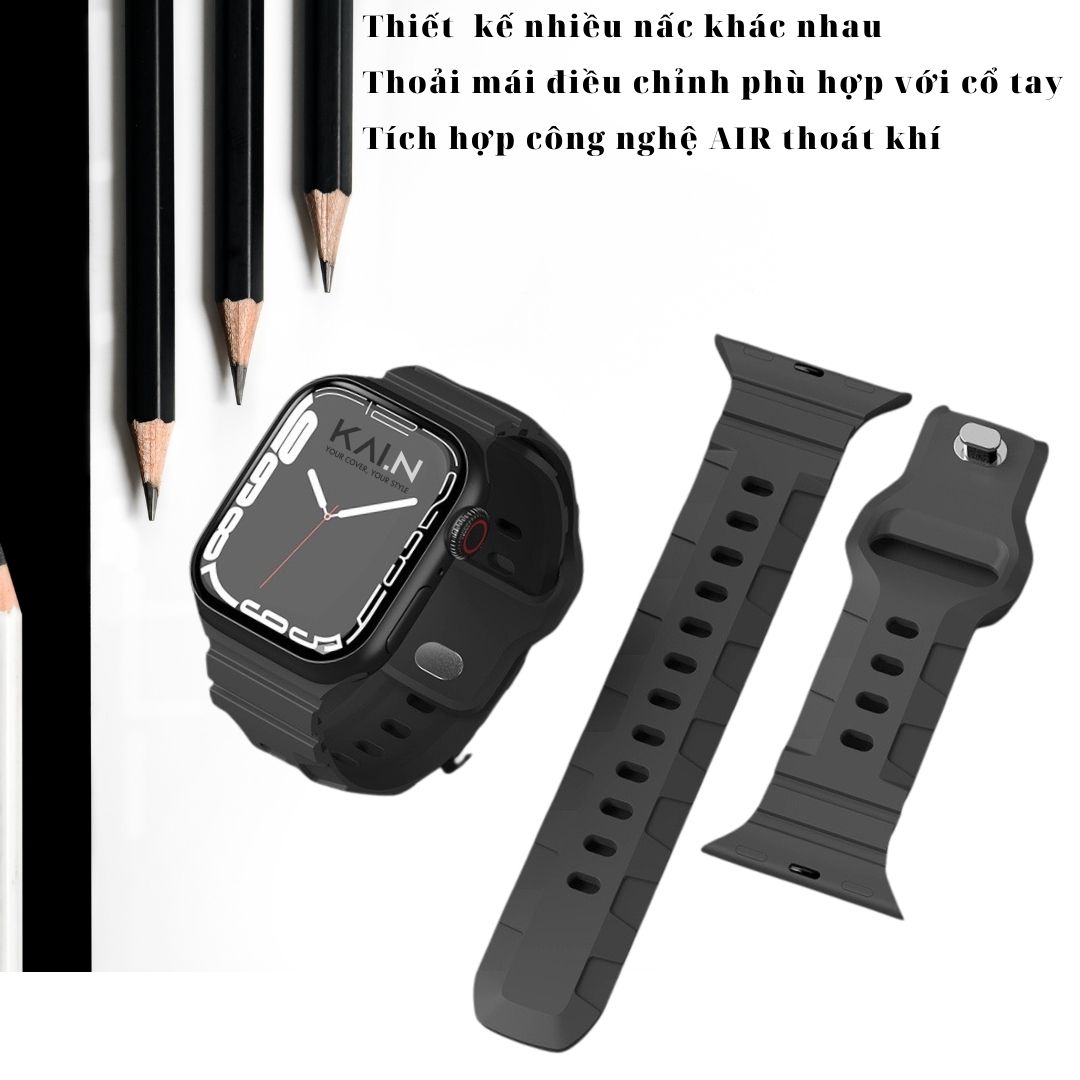 Dây Đeo Silicone Kai.N Sport Band Dành Cho Apple Watch Ultra / Apple Watch Series - Hàng Chính Hãng Đặc tính sản phẩm: - Chất liệu Silicone cao cấp, mềm dẻo giúp cổ tay được bao bọc một cách êm ái, chống bị chảy mồ hôi và ảnh hưởng bởi chất hóa học   - Bạn có thể thoải mái hoạt động thể thao mà không sợ bức bí với thiết kế thông minh, giúp không khí luôn lưu thông ở mặt trong dây đeo, việc tập luyện sẽ trở nên dễ chịu hơn bao giờ hết   - Thiết kế công thái học của dây đeo Kai.N Sport Band giúp bạn luôn thoải mái khi đeo Apple Watch hằng ngày     - Khóa cài an toàn với hợp kim nhôm chắc chắn giúp bạn tự tin tham gia các hoạt động dã ngoại mà không sợ rơi rớt     - Đặc biệt thiết kế SKELETON tạo điểm nhấn cho chiếc Đồng Hồ luôn trở lên nổi bật với mọi hoạt động hàng ngày   Thương hiệu - Kai.N Chất liệu - Silicone Cao Cấp Thiết kế - Dành Cho Apple Watch Series / Apple Watch Ultra Chức năng - Dây Đeo Thể Thao    Giao hàng nhanh toàn quốc  Nếu cần - Hãy nhắn tin cho Kai.N để được tư vấn thêm và hỗ trợ về sản phẩm nhé