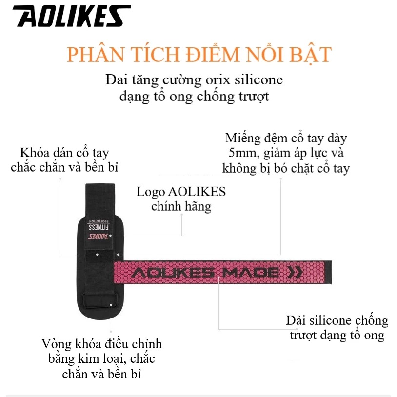 ✨Dây kéo lưng trợ lực cổ tay AOLIKES AL7633 nâng tạ tập gym sports fitness protection help wristbands