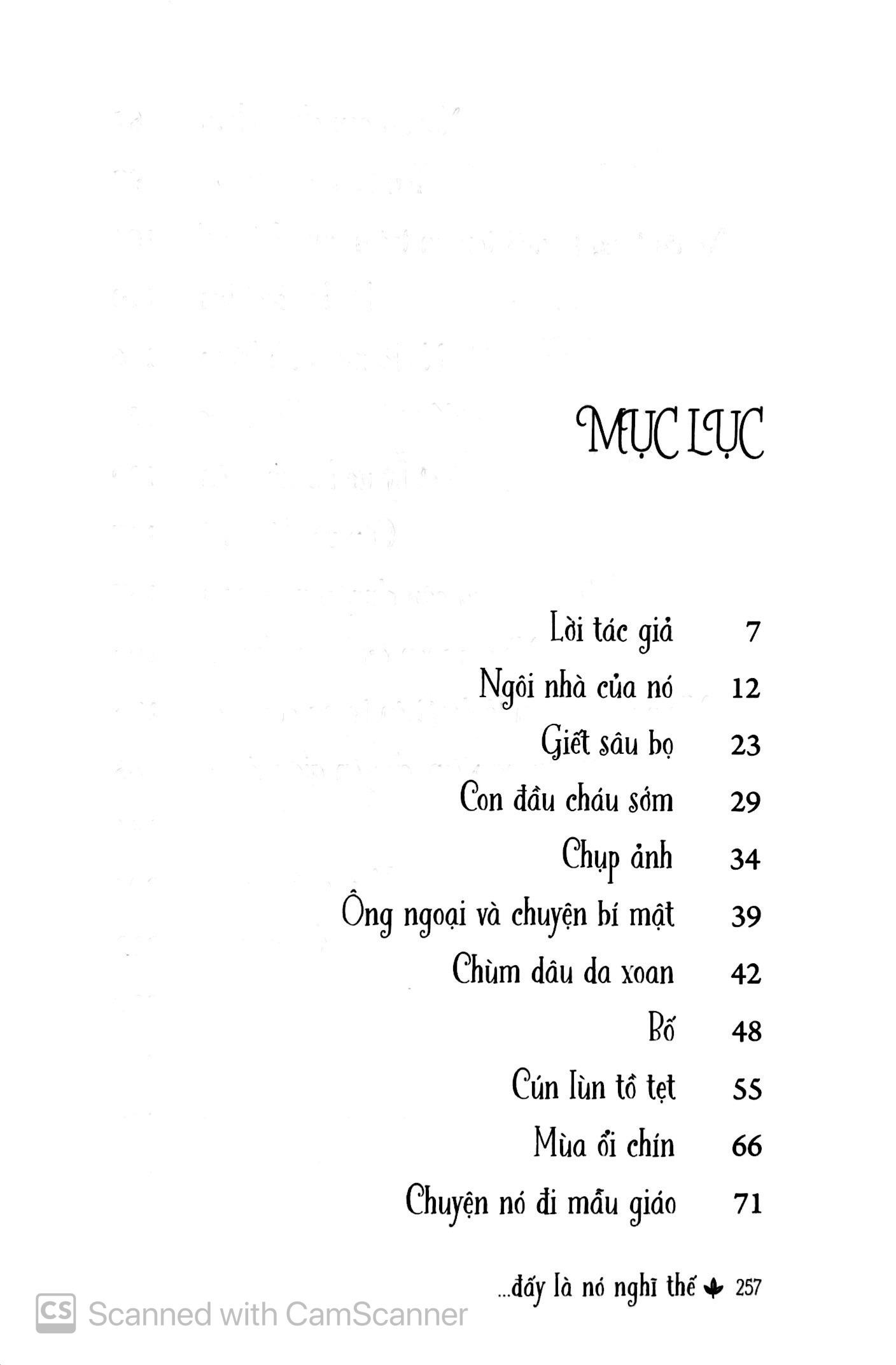 “ Đấy là nó nghĩ thế” - như chính cái tên dí dỏm của nó - là tập hợp những ký ức về thế giới xung quanh, qua đôi mắt của chính Anh Thư khi còn là một cô bé “đầu nấm chân trần” tung tăng trên những con đường ven Hà Nội. Bằng giọng văn mộc mạc mà cuốn hút, cuốn sách đầy ắp những kỉ niệm vui - buồn của tuổi thơ, mà người đọc sẽ thấy vừa quen vừa lạ. Đó là những buổi đi chơi ở Bách hóa Tràng Tiền, là những thìa đường lén lút chia nhau trên lớp, hay giọt nước mắt tức tưởi sau cái chết của con chim Sáo mà “nó” hết mực yêu thương. Cảm xúc trong trẻo và thật thà mà Anh Thư đem lại, khiến cho độc giả phải bồi hồi nhớ về m.ình của ngày xưa, nhớ về một tuổi thơ xa lắm.