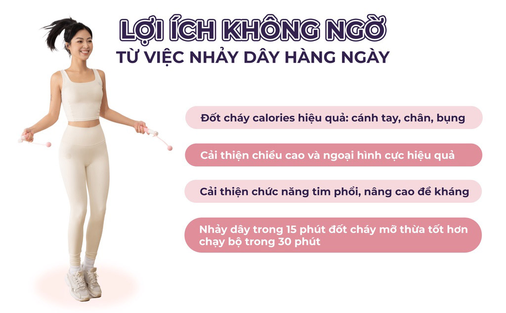 - Dây nhảy không dây, không lo đập vào chân hoặc vấp dây. Các bài tập với dây nhảy không dây hoàn hảo tại các không gian hẹp như nơi làm việc, phòng ngủ, phòng khách và có thể tập luyện cường độ cao giảm cân hiệu quả tại nhà cho người mới.