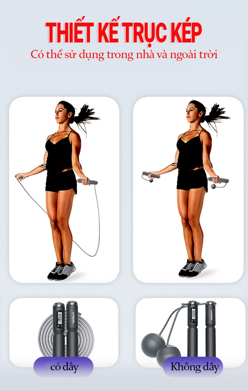 - Được thiết kế với bộ đếm calo và bộ đếm số vòng nhảy chính xác, dễ dàng thiết lập.