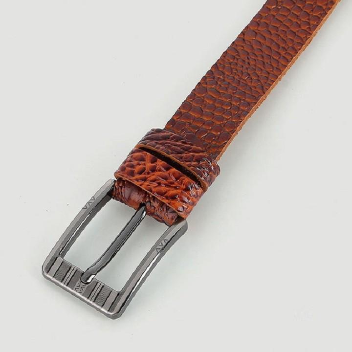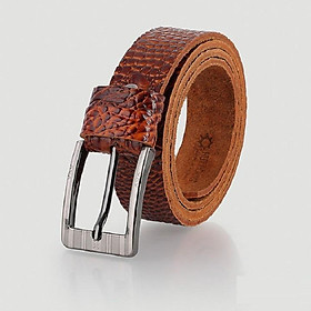 Dây nịt/Thắt lưng nam da bò Huy Hoàng vân cá sấu 1 lớp màu nâu 4124
