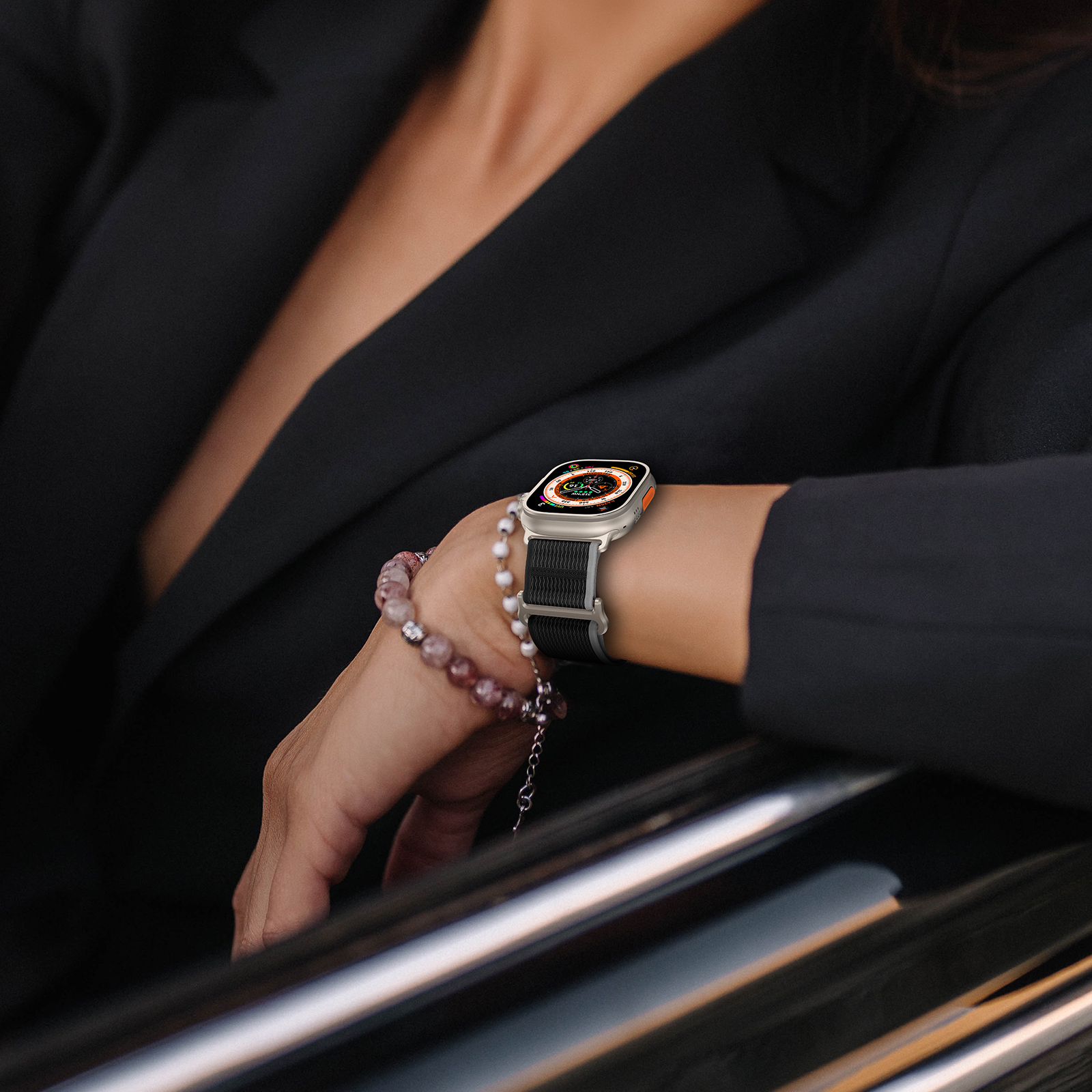 Mua tại TiktokDây Nylon Khóa USA Size 40mm / 41mm / 42mm & 44mm / 45mm / 46mm / 49mm cho Apple Watch Dây được bện nylon co giãn chất lượng cao Chốt thông minh giúp tháo lắp nhanh chóng Ôm vừa vặn, vừa vặn với mọi cổ tay, khóa điều chỉnh không bị phồng, đeo thoải mái và đẹp mắt