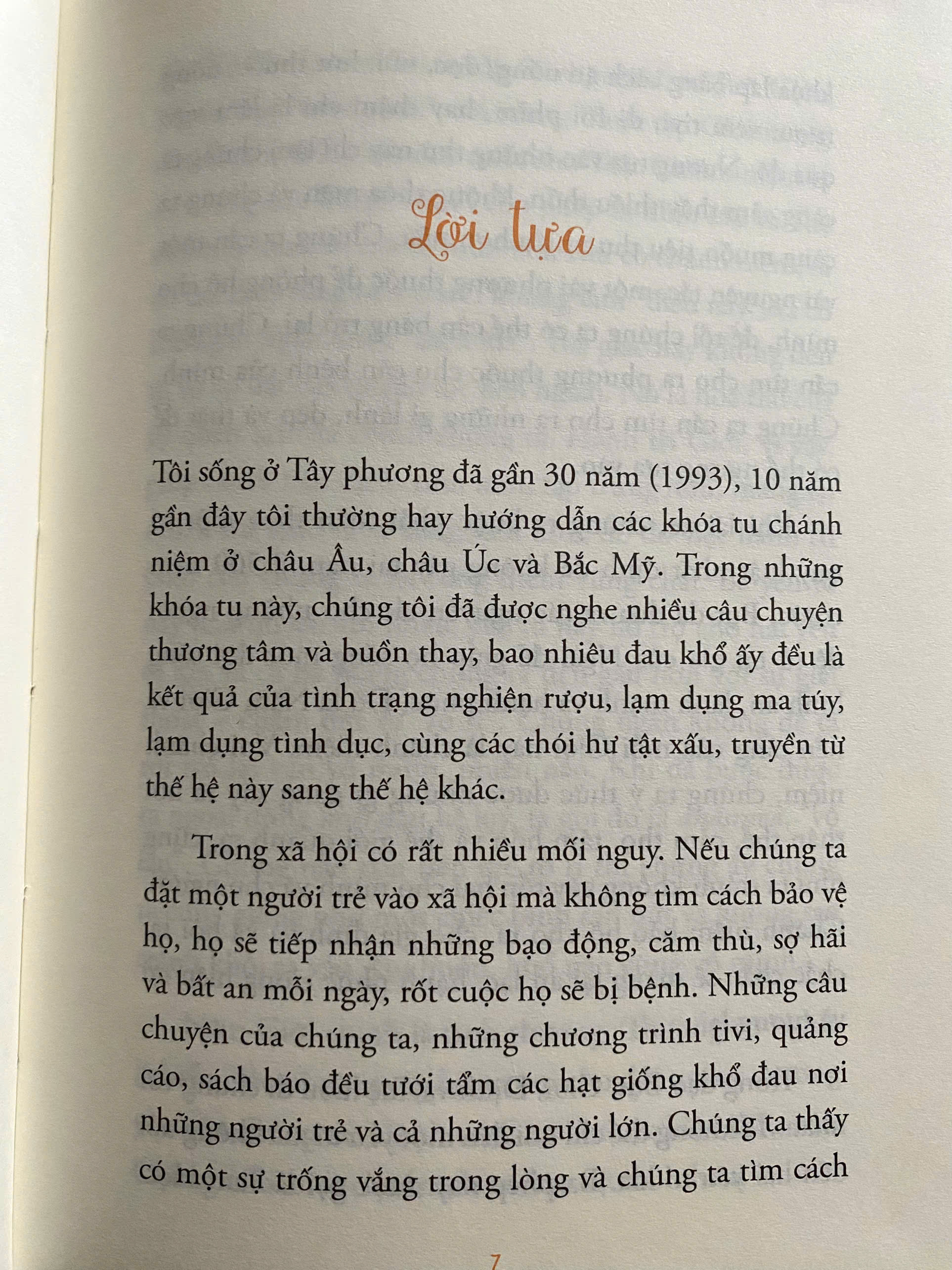 Trong xã hội có rất nhiều mối nguy. Nếu chúng ta đặt một người trẻ vào xã hội mà không tìm cách bảo vệ họ, họ sẽ tiếp nhận những bạo động, căm thù, sợ hãi và bất an mỗi ngày, rốt cuộc họ sẽ bị bệnh. Những câu chuyện của chúng ta, những chương trình tivi, quảng cáo, sách báo đều tưới tẩm các hạt giống khổ đau nơi những người trẻ và cả những người lớn. Chúng ta cần một vài nguyên tắc, vài phương thuốc cho căn bệnh của mình, những gì lành, đẹp và thật để có thể nương tựa vào.