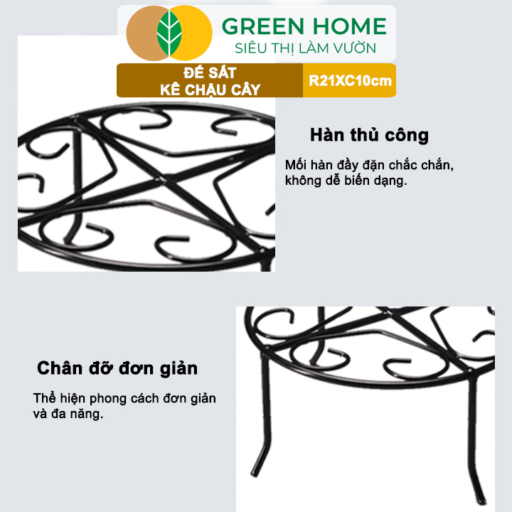 ✨Đế Kê Chậu Cây Greenhome, R21xc10cm, Bằng Sắt Sơn Tĩnh Điện, Màu Đen, Uốn Mỹ Nghệ, Bền, Đẹp, Nhiều Hình Dạng Lựa Chọn