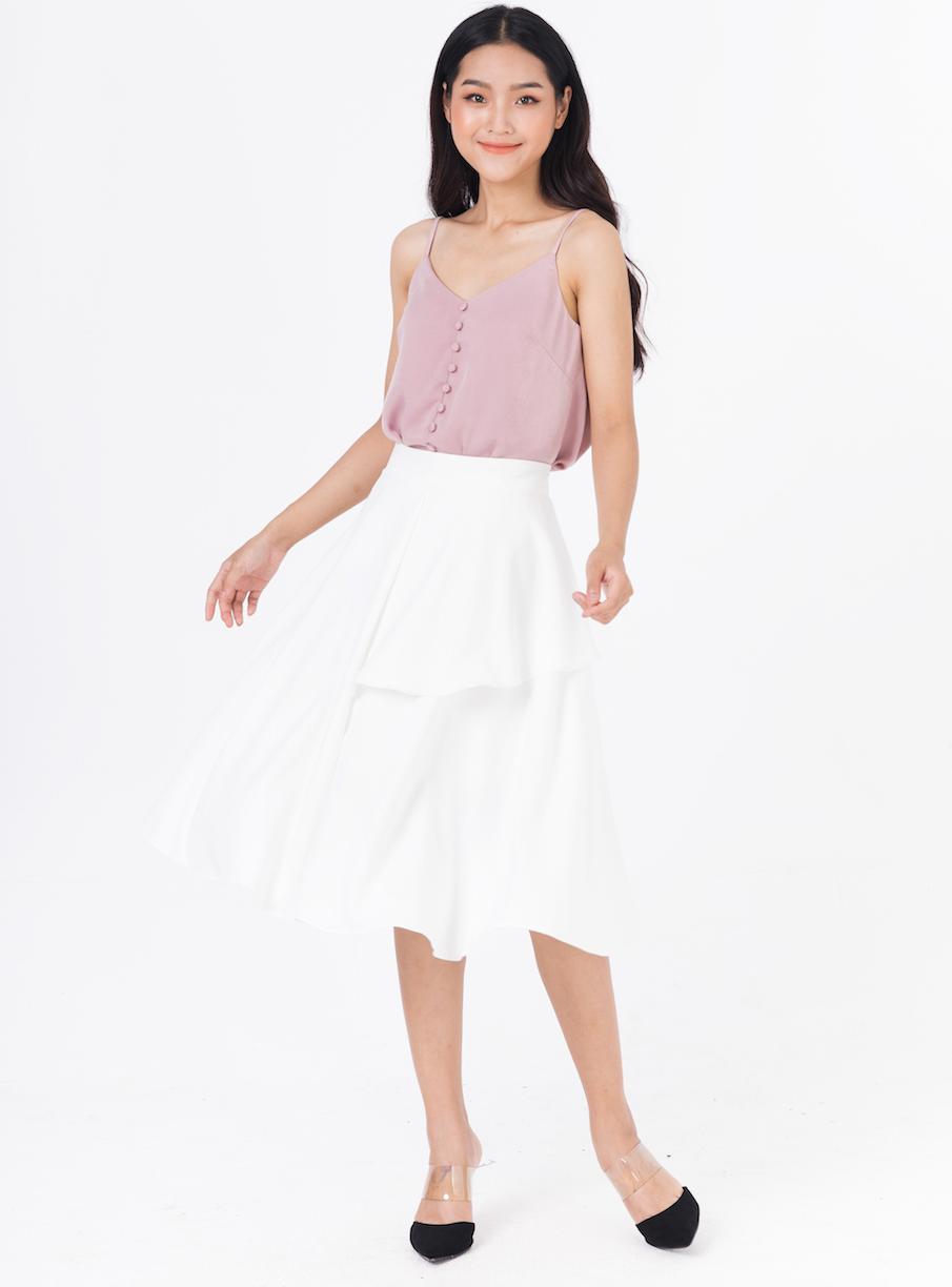Áo 2 Dây với hàng cúc bọc tạo điểm nhấn trẻ trung, nữ tính. Áo có thể phối theo nhiều phong cách, với quần sóc hay quần tây cá tính, hoặc với chân váy xoè