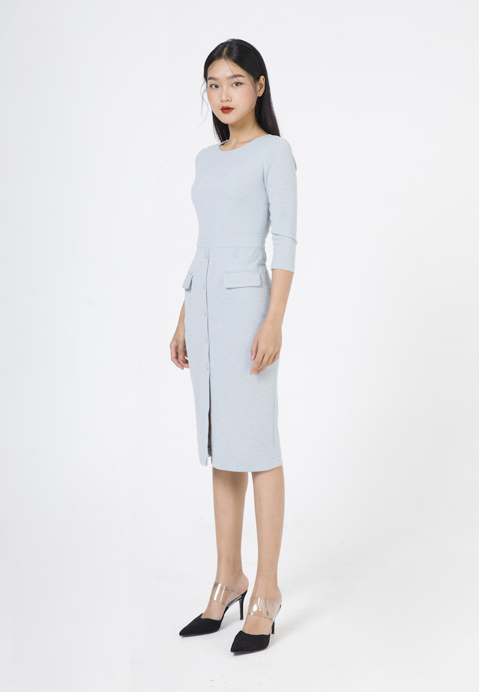 - Đầm dáng ôm midi dài qua gối